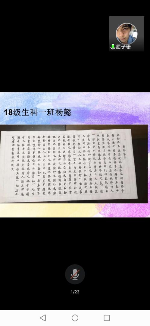 此次书画展览活动采用线上举办的方式。从作品的征集、我院微信公众平台的投票初选,最终选出15幅作品在腾讯会议室展出。参赛作品形式多样,有书法作品、素描作品、水彩作品、漫画作品等等。同学们通过讲解自己参赛作品背后的故事,号召广大学生关注自身心理健康,进一步认识自我、关爱自我,同时学会理解自己、理解他人,减轻疫情可能的心理干扰和心理危害,调节心理和情绪,顺利度过疫情期间居家学习和生活。