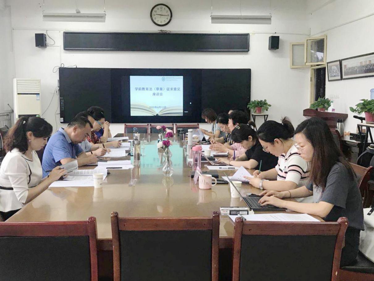 2020年6月12日上午受学校学术委员会委托,幼儿教育学院邀请到陕西省哲社重点研究基地——学前教育发展研究中心的教育法和学前教育专家,以及不同类型幼儿园知名园长代表在启真楼307会议室召开专题研讨会,对《征求意见稿》进行了讨论,文明副校长出席了座谈会,何善平院长主持会议。