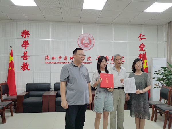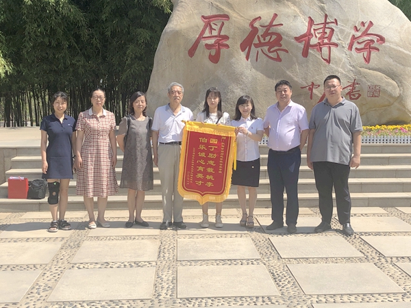 李忆楠父母向学院赠送锦旗和感谢谢表示感谢,学院向李忆楠一家回赠了学生四年学习成绩单和学院文创作品。