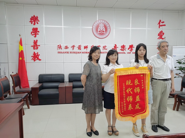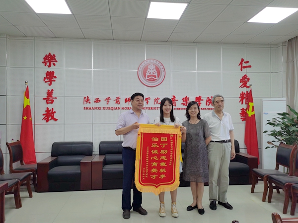 6月5日上午,2020届音乐学院音乐学本科毕业生李忆楠携父母专程返校答谢学院的培育之情,并向学院赠送锦旗、感谢信表达谢意。音乐学院领导和教师、学生代表出席座谈会。党总支书记仵录让主持座谈会。