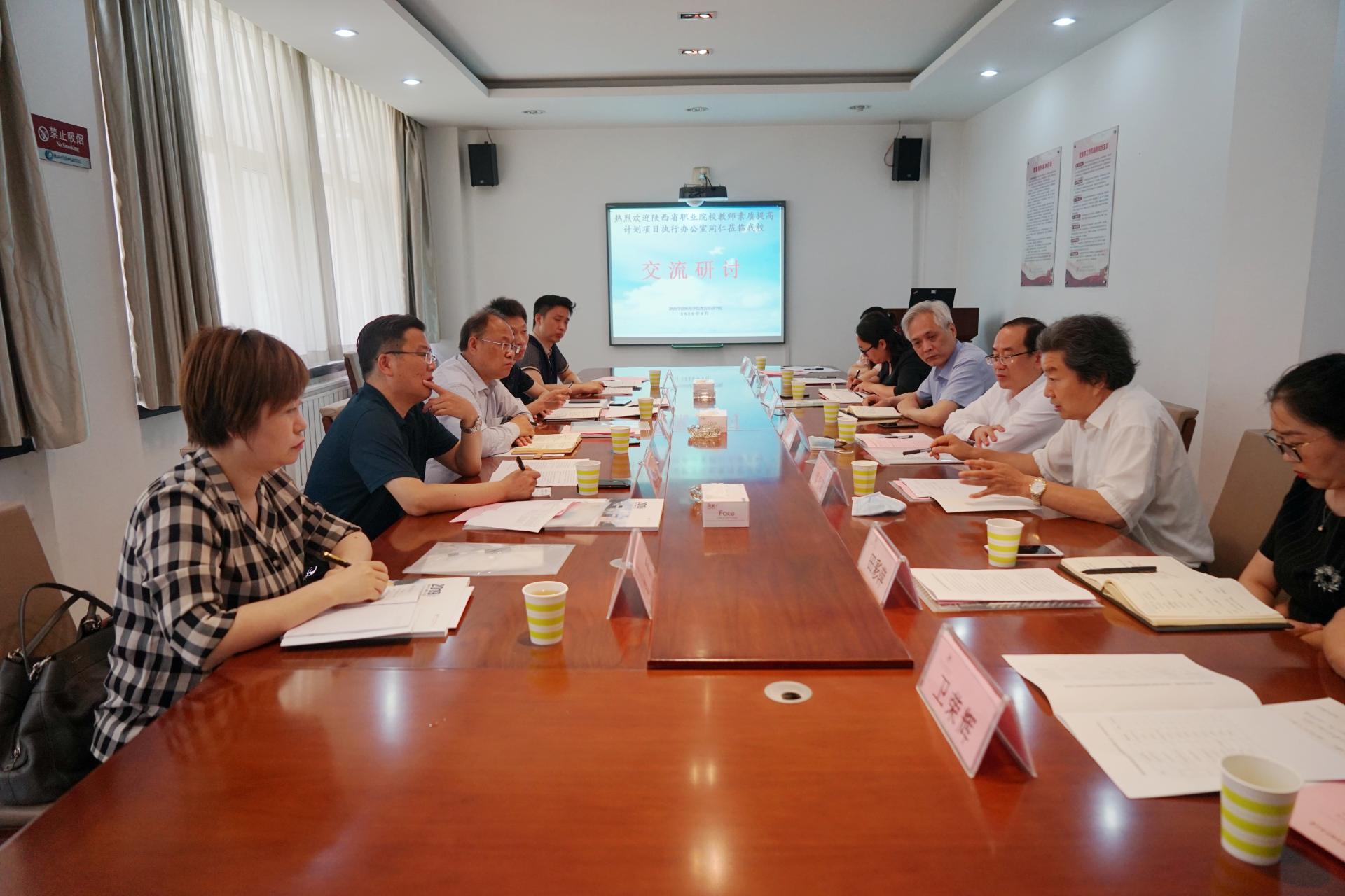 刘清主任对我校一直以来在我省中职教师培训工作中作出的成绩给予肯定,提出了项目办今年培训项目的新标准和新要求;陕西省职业院校教师素质提高项目执行办公室副主任乌军锋、贾严鹏就目前中职教师培训项目由线下转线上的培训模式所遇到的具体问题和与会的专家进行了交流研讨。教育培训学院院长梁朝阳针对项目办提出的问题集中进行了解答和汇报。