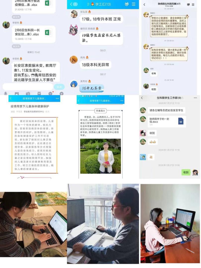 作为党员,作为高校教师,学院辅导员梯队及时响应学校安排,在家设立临时办公位,24小时在线关注学生动态,他们讲担当,负责任,发挥党员先锋带头作用,积极落实学校及学院领导安排。通过电话,班级群及时转发疫情相关信息,让全体学生及时了解情况,引导学生不信谣、不传谣,全方位动员家长和广大学生一道共同汇聚起疫情科学防控宣传的正能量。