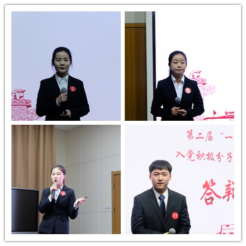 参加本次答辩会的12名选手是严格按照相关推荐标准从承办学院确定的入党积极分子中遴选出来的。答辩会分为现场陈述和现场答辩两个环节,在汇报环节中,选手们以课件呈现形式,介绍自己的基本情况、入党心路历程、下一步的计划打算,表明入党的决心。过程中,有的同学能根据个人的成长经历,谈出思想上的变化,有的同学能联系参加的校内外实践活动,说出行动中的进步,基本都做到了实事求是、重点突出、生动鲜活,将逻辑性与情感性有效结合起来;在答辩环节中,评委就汇报内容、党的基本理论知识、时事政治等多方面向选手发问,全方位的考察入党积极分子的理论素养与思辨能力,问题中既有诸如“你是如何向党组织靠拢的”、“共青团和中国共产党的关系是什么”之类的针对性提问,又有像“20世纪30年代,为什么三万多名青年人会克服困难奔赴延安”、“作为中小学负责讲思政课的老师,想要你的课富有感染力,你认为最重要的是什么”、“学校的一训三风是什么”之类坚定理想信念、提高文化涵养、培养爱校情怀的发挥性提问。问答中,评委们相机指导、循循善诱,选手们沉着应对,据实已答。台下观摩的同学更是认真聆听、若有所思,整个会场洋溢着朝气与活力,氛围浓厚。