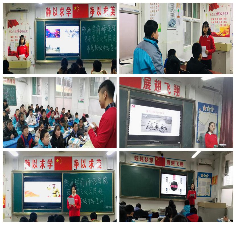 12月23日下午,马克思主义学院大学生理论宣讲团受邀前往西安市长安区韦曲街道申店初级中学开展爱国主义教育主题宣讲。申店初级中学校长吴斌、部分教师代表,我院教师万生更、薛璇、申店初级中学300余名学生听取了宣讲。