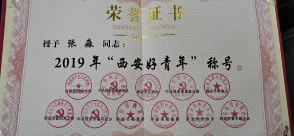 12月18日,由共青团西安市委联合西安市委宣传部(市委文明办)、市委政法委、市委网信办等11家单位共同主办的2019年“西安好青年”发布仪式在西咸新区秦汉中学举行。荣耀(中国)音乐学院青年教师张淼荣获“西安好青年”荣誉称号。