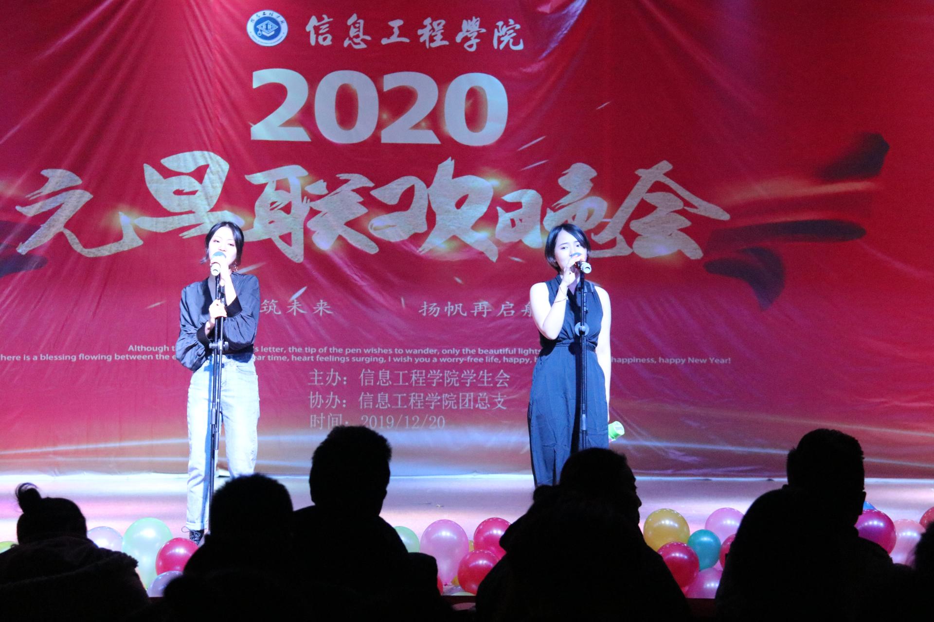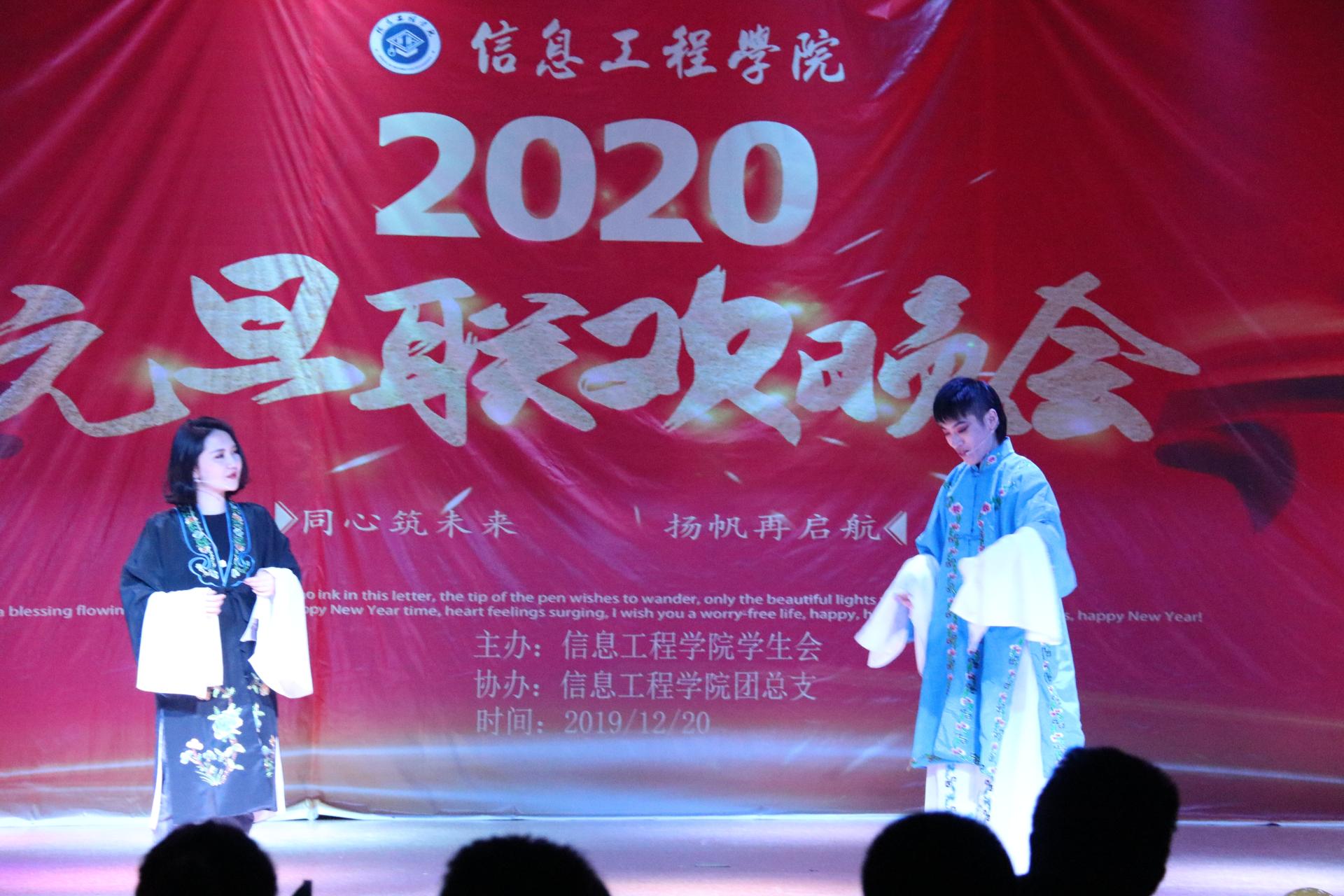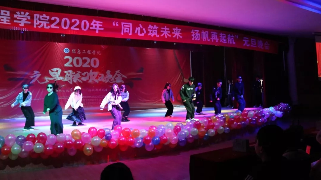收获2019,展望2020。2019年12月20日晚6:30,信息工程学院2020年“同心筑未来,扬帆再起航”元旦晚会在荣耀(中国)大学生活动中心隆重举行。我院党政领导班子、全体辅导员、各系教师及500余名学生欢聚一堂,共享盛宴,辞旧迎新。