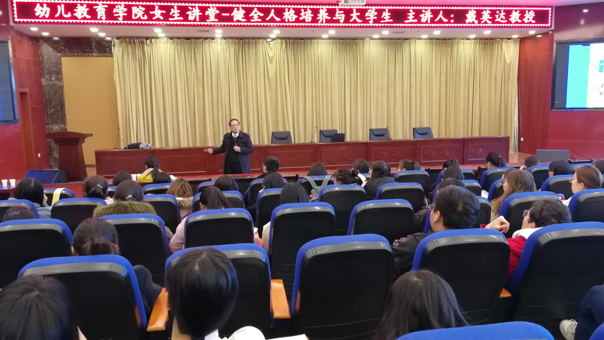 在本场讲座中,戴英达教授以“健全人格培养”为主题,从党和国家的需要、教育的缺失、一切向钱看、向权看的社会背景、重智力、重体格发育的社会背景、对早产儿溺爱、以及形势需要六个方面向到场的同学们介绍了健全人格培养的重要性。讲座中,戴教授首先从习总书记在全国思政教育大会上坚持以德育为先的讲话出发,指出国家教育和国家建设和发展对于健全人格培养的迫切需要。其次,戴教授从疫苗事件、奶粉事件以及间谍事件等社会想象揭露了我国当前教育存在道德教育、爱国教育、三观教育等教育缺失以及溺爱养育的问题,进而提出健全人格培养的紧迫性和重要性。再次,戴教授从医学和生物学的角度出发,提出健全人格教育从个体出生开始就应抓起,同时提出0-3岁是一个关键期,这就为我院学生将来从事幼儿教育工作指明了方向,此外,戴教授以去日本、德国和俄罗斯等发达国家游历时亲身感受到的这些国家关于健全人格教育的理念和做法从而提出教育中父母、老师的榜样力量;最后,戴教授通过分析国内国际形势提出中国与其他发达国家的差距,警醒在场的学生,引人思考。