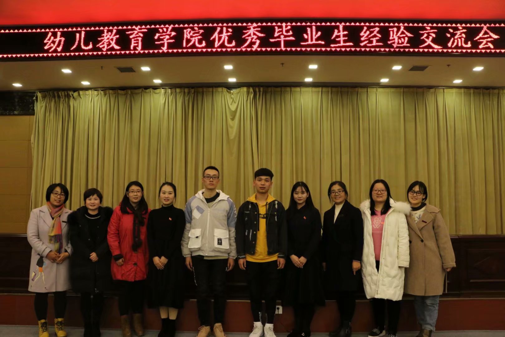 为使同学们更好地珍惜校园时光,掌握科学的学习方法,同时了解学前教育专业的就业形势,对自己的未来有明确的规划,2019年11月27日下午,幼儿教育学院在图书馆报告厅举办“学长讲堂”第一期---优秀毕业生经验交流分享会。我院党总支副书记、全体辅导员以及2017级本科和18级专科学生近400余人聆听了本次分享会。会议由刘颖庆主持。