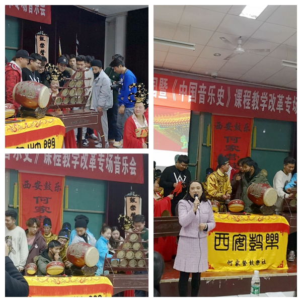 11月25日下午,由音乐学院鼓乐社团组织开展的西安鼓乐进校园暨《中国音乐史》课程教学改革专场音乐会在积学楼C1顺利举行,学院党政领导、各系主任、音乐学、音乐表演专业部分学生近200人参与观摩与互动。
