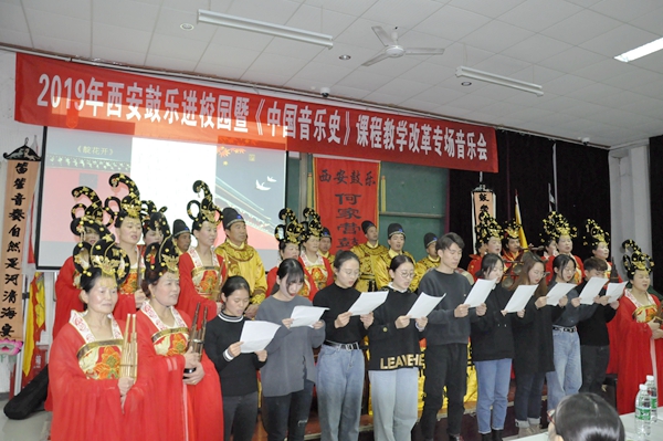 本次活动是《中国音乐史》课程教学改革的重要内容,学院三次引进西安鼓乐进课程,分别从乐器、记谱方式、表演形式、文化传承等方面阐述其在音乐史上的价值;同时本次活动还是音乐学院艺术实践教学活动月的系列活动之一,鼓乐社团的同学们通过艺术实践展示艺术社团近期教学改革成果;本次活动还为学院古代音乐文化研究中心在传承、研究与保护世界非物质文化遗产“长安古乐”,推进汉唐乐舞,提供了实践依据。