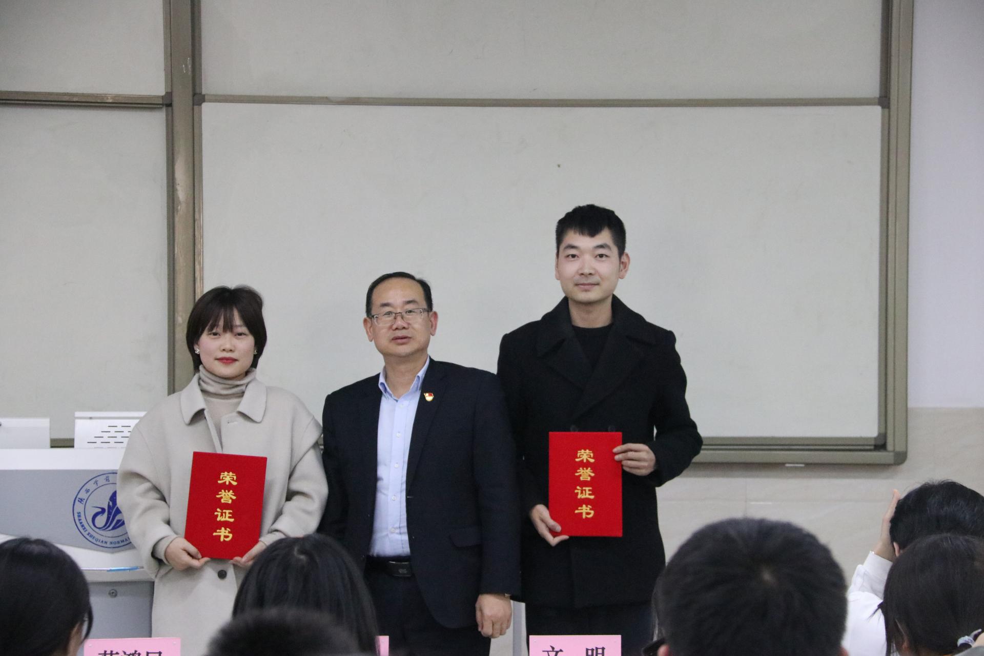 最后,由副校长文明、教务处处长崔锐、学科建设与科研处处长李强和我院党政领导为本届科技节的获奖团队学生代表及优秀指导教师进行了颁奖。