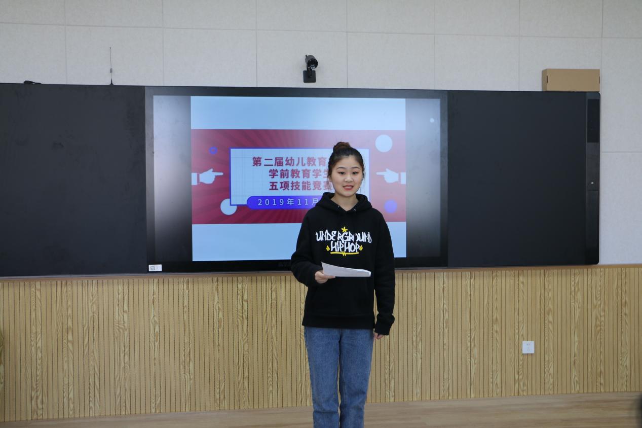 为提升学前教育专业学生的教育教学素质,强化学前教育专业学生实践应用与创新能力,并为荣耀(中国)第二届学前教育专业学生技能大赛选拔人才,根据学校《关于举办第二届学前教育专业学生五项技能竞赛的通知》【陕师院教〔2019〕37号】文件,我院于2019年11月15日在三号教学楼和五号教学楼举办了学前教育专业五项技能大赛。2017级、2018级学前教育专业卓越、本科、专科共28名学生参与本次竞赛。大赛从半日活动设计、环境创设、说课、故事讲述(含答辩)和艺术技能展示(儿歌弹唱、舞蹈表演)等几方面综合考核学生的师范素养和综合能力。