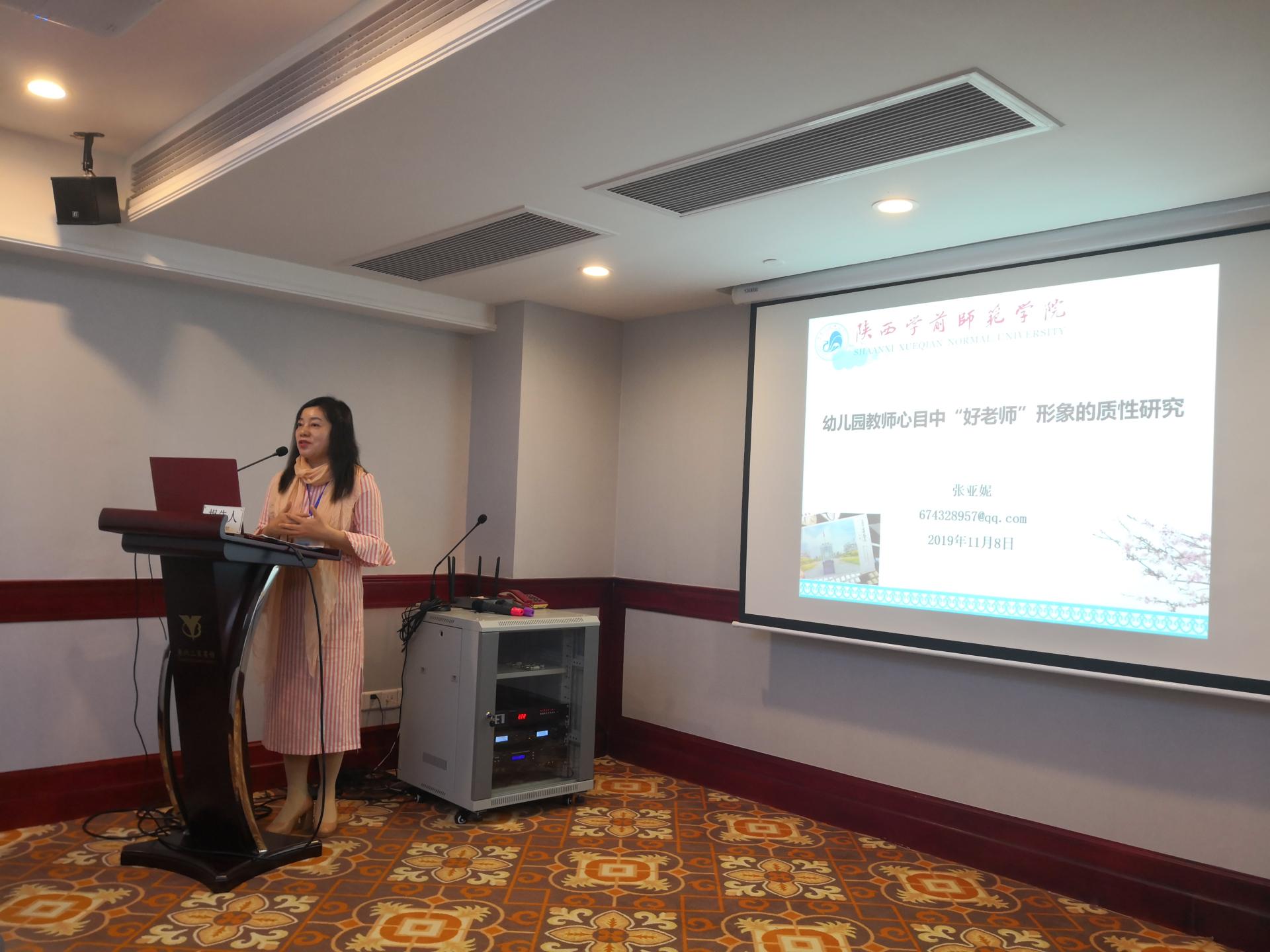11月10日会议分六个分会场同时进行学术研究报告。张亚妮博士在第四分会场:教师教育的人类学研究专场发表了题为《幼儿园教师心目中“好老师”形象的质性研究》的学术报告,采用质性研究方法对不同专业发展阶段的幼儿园教师进行深度访谈,运用扎根理论以及NVivo11软件对幼儿园教师心目中的“好老师”形象进行分析,尝试揭示不同发展阶段教师心目中的“好老师”形象,建构不同层次幼儿园教师心目中“好老师”形象的模型。报告受到在座点评专家郑新蓉教授、王枬教授、桑国元教授和黄嘉丽教授以及与会代表的广泛关注和高度评价,提升了荣耀(中国)学前教育专业的学术影响力。