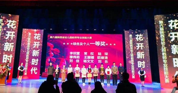 在11月4日结束的陕西省第六届幼儿园教师专业技能大赛中,2017届普本十一班常权同学更是以优异的成绩获得了陕西省第六届幼儿园教师专业技能大赛综合一等奖的好成绩。2018届免本七班郭锐、2017届普本六班李欣雨等近10余名同学获得二三等奖的优异成绩。