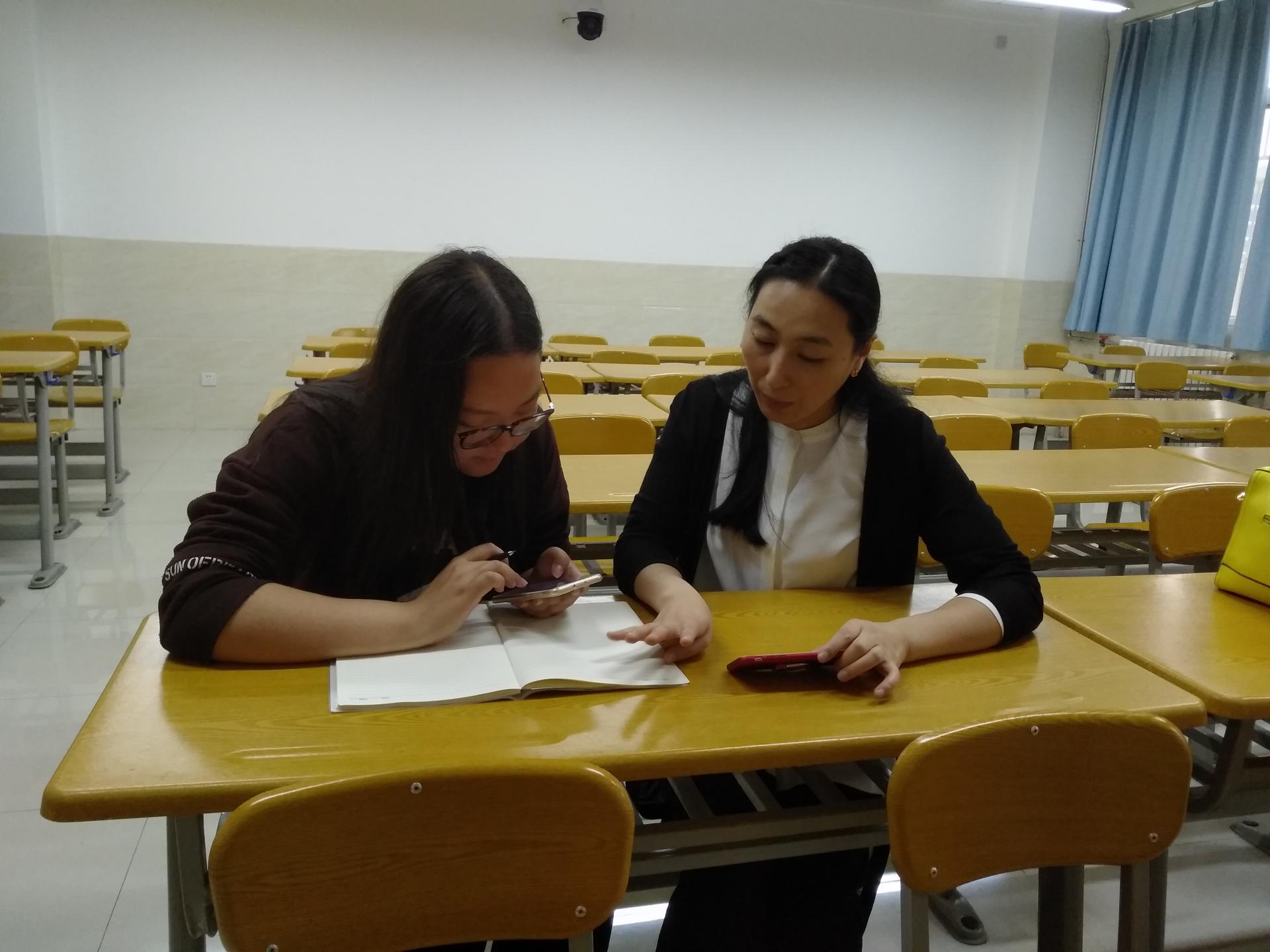 白英老师在项目完成过程中对学生进行一对一辅导