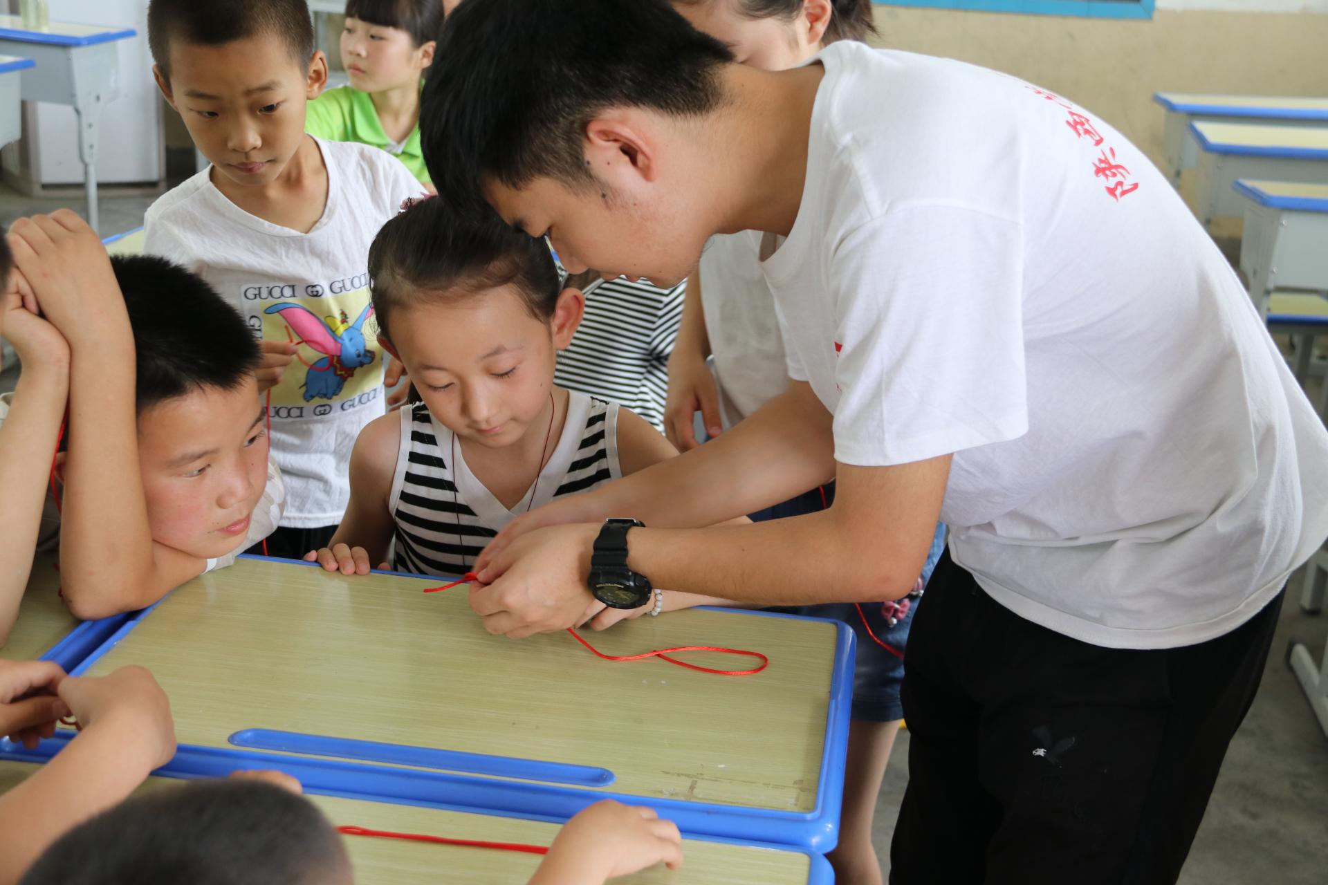 志愿者老师教小朋友们做绳结