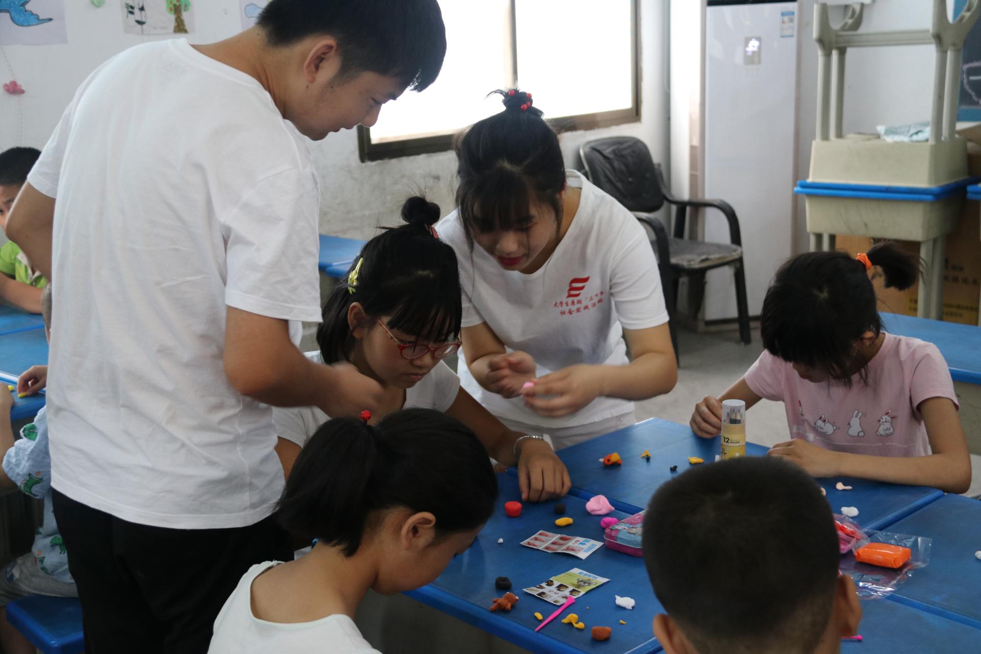 志愿者老师用橡皮泥教小朋友们做手工