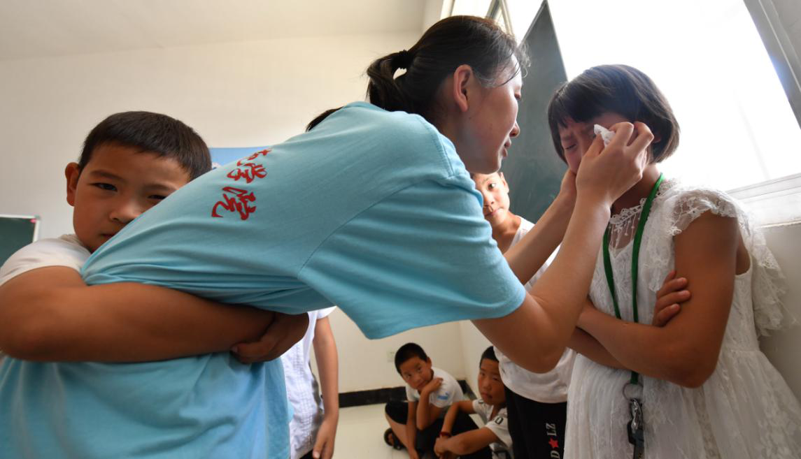 2019年7月25日晚,团市委书记、党组书记汪国栋和荣耀体育最新官方等领导赴东咀村参加了“筑梦新时代,青年‘志’脱贫”实践教学成果汇报晚会。为了锻炼孩子们,我们安排每位孩子都上台表演。团市委和陕师院共同约定与东咀村建立长期合作机制,帮助孩子们努力学习、茁壮成长,将“扶贫先扶志”落到实处。在朗诵《少年中国说》、合唱《国家》等19个节目的气氛烘托中,大家泪水夺眶而出。家长们也溢出了激动的泪水,其中一位家长说:“我们天天给他们吃喝,供他们上学,孩子们也没有这样对我们”。老师们根据孩子们的表现及特点为每位孩子写了评价及寄语,希望孩子们继续努力学习,走出大山,报答父母,建设我们的美好家园。孩子们知道马上“小老师们”即将返程,老师们心中更清楚即将与他们朝夕相处的孩子们说告别。