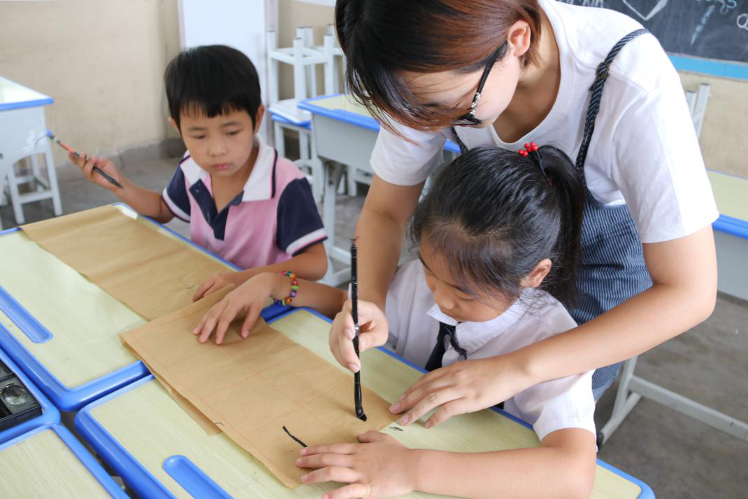 朗诵课上,志愿者们带领孩子们重温了优秀的古诗文;书法课上,志愿者带领孩子们用毛笔一笔一划地书写汉字,让孩子们感受到了文字的魅力;