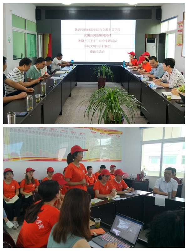 乡风文明实践团队则深入汉阴县洞河村对当地教育、医疗、环境、惠民等政策、传统文化习俗方面展开全面调研。为确保效果,学院党总支带领指导教师与汉阴县委以社会实践座谈会的形式进行充分交流,双方还就加强高校与基层之间合作交流的重要性达成共识,提出合作构建学生社会实践基地的构想。此外,我院两位同行教授围绕脱贫攻坚和乡村振兴为洞河村支招解惑。