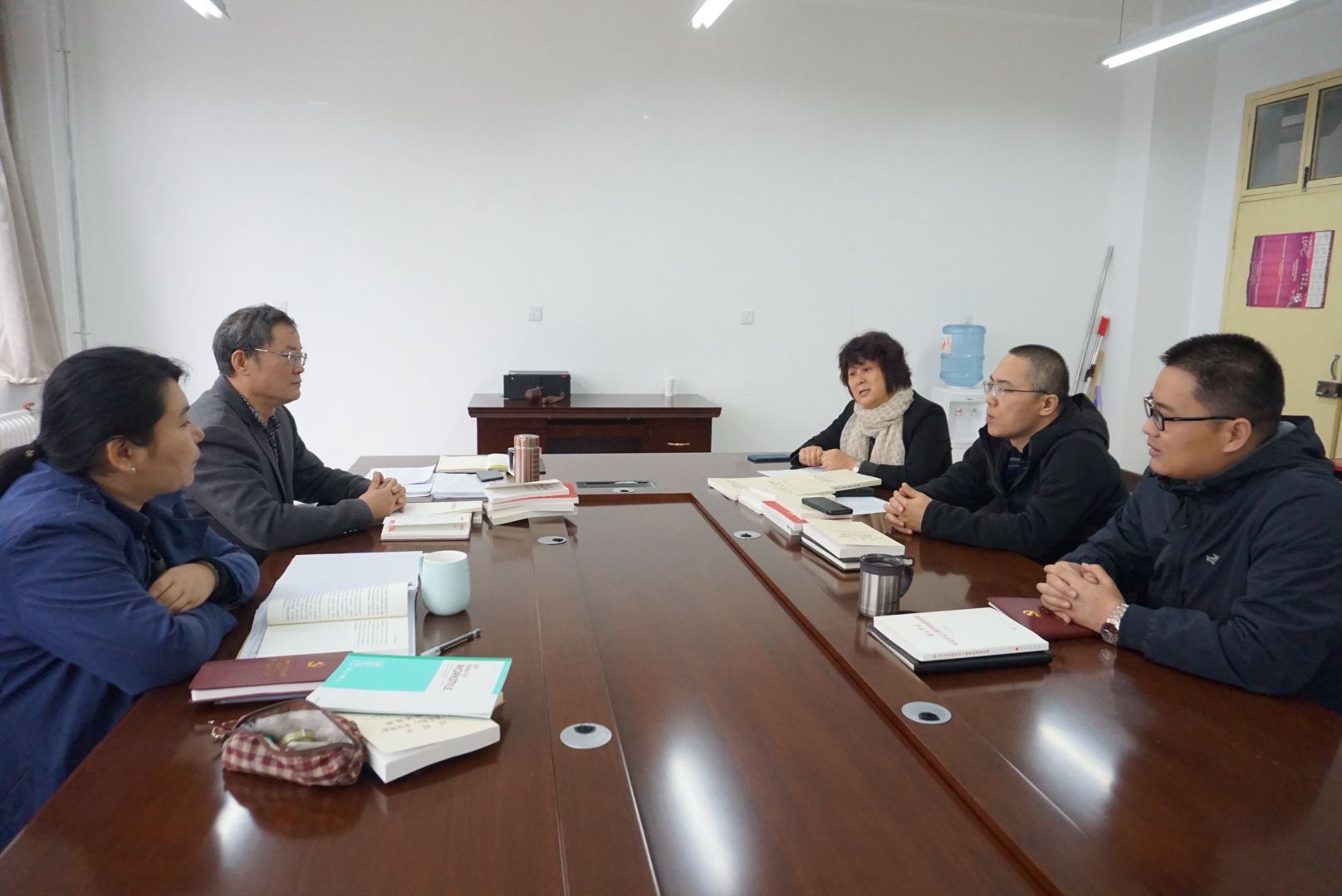 此次读书会分两个阶段。第一阶段,由学院院长王福民领学《习近平关于“不忘初心、牢记使命”重要论述选编》中的重要章节“弘扬伟大长征精神,走好今天的长征路”,而后,由院党总支副书记解跃领学《深入学习习近平关于教育的重要论述》中“坚持党对教育事业的全面领导”一章。两篇“原文章节”可读性高、指引强,能较好贴近我院工作实际,进一步激发出中心组成员的学习动力。接着,会议第二阶段,与会成员纷纷围绕学习内容,结合当前中心工作与岗位职责,开展交流研讨发言,深化思想认识、深挖问题不足,从而对“坚持党对教育事业的全面领导”、“人无精神则不立,国无精神则不强”、“一代人有一代人的长征路”等内容有了更深的理解。