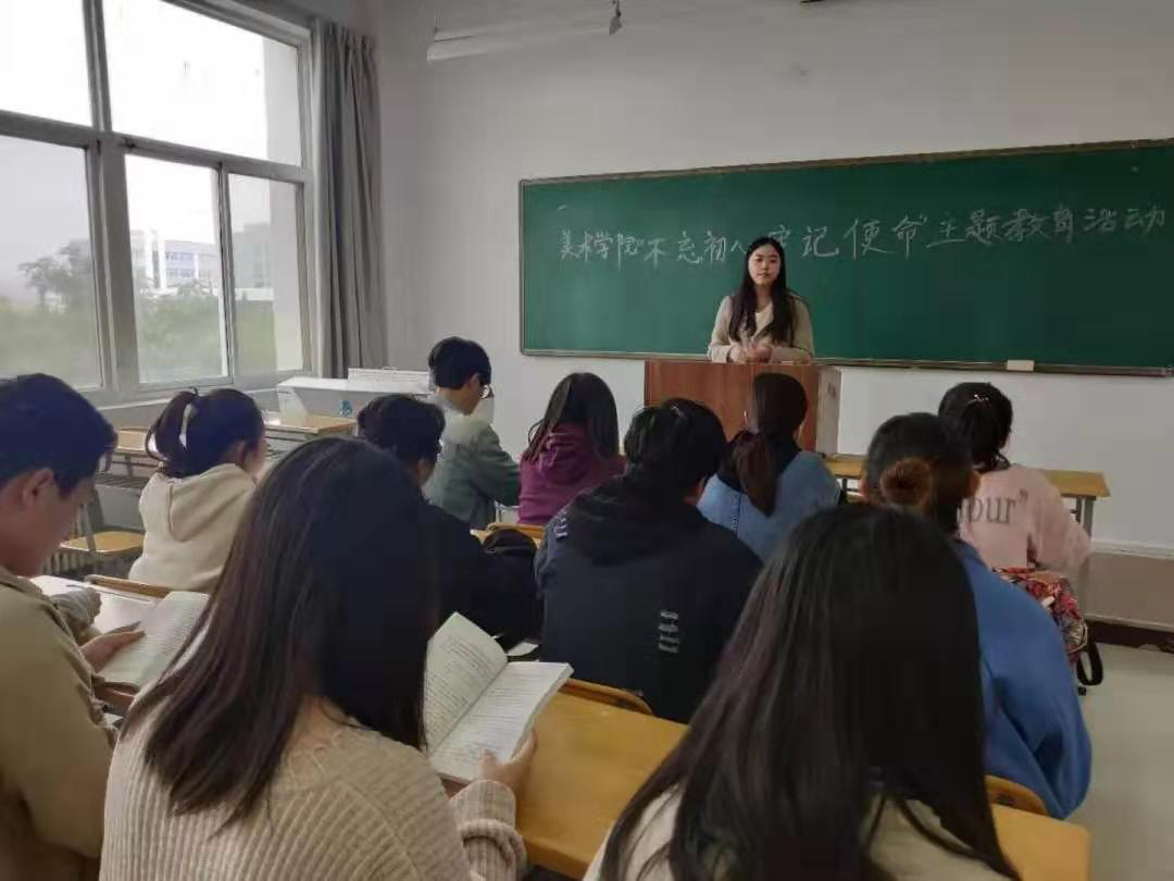 2019年10月16日上午,美术学院学生党支部组织学生党员、积极分子开展了“不忘初心、牢记使命”主题教育学习研讨活动。会议由美术学院学生党支部书记蔡艳君主持。