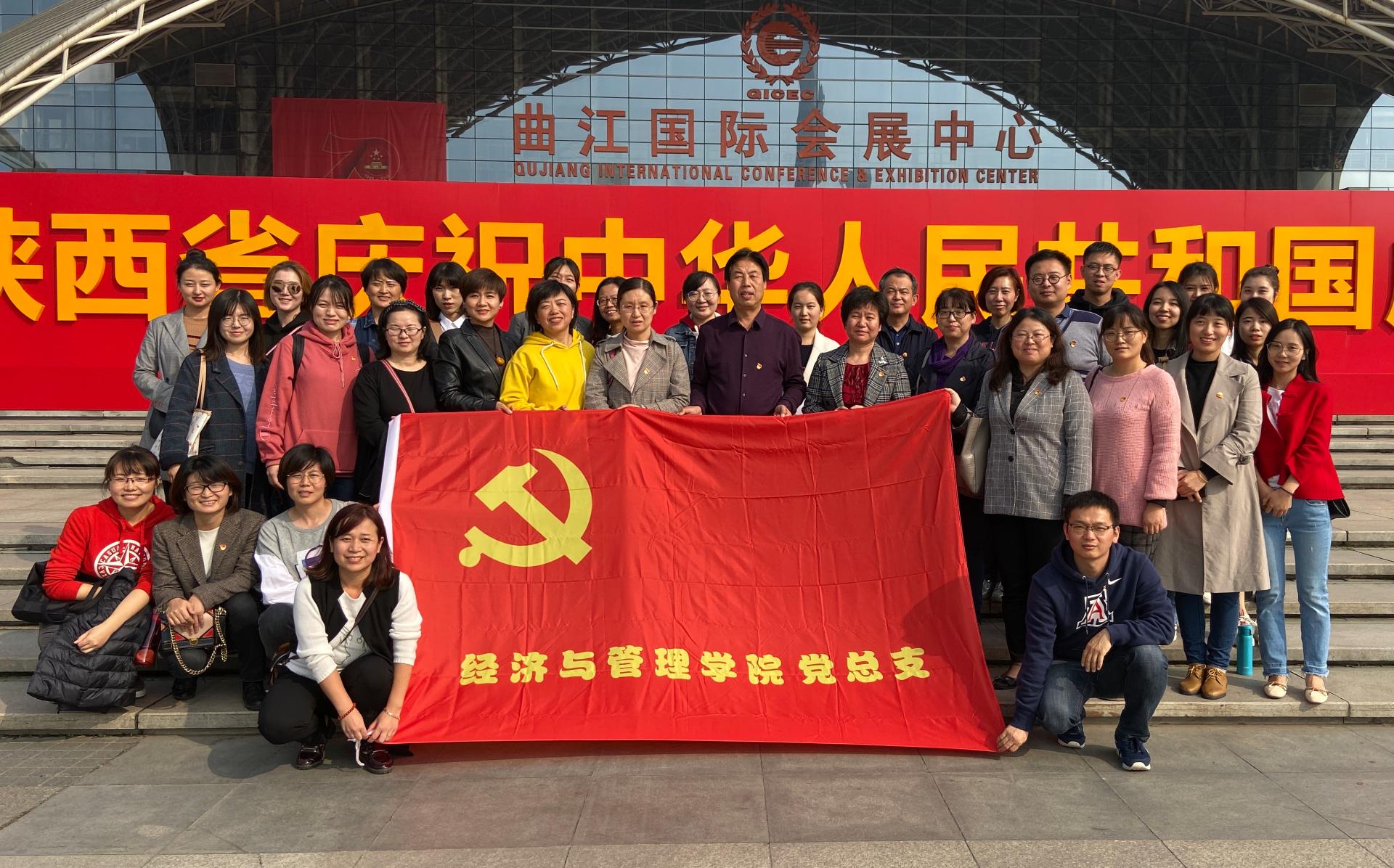 为更好的感受新中国成立七十年辉煌发展历程及陕西省的巨变与成就,2019年10月19日下午,经济与管理学院组织全体教工赴西安曲江国际会展中心参观“陕西省庆祝中华人民共和国成立七十周年成就展”。