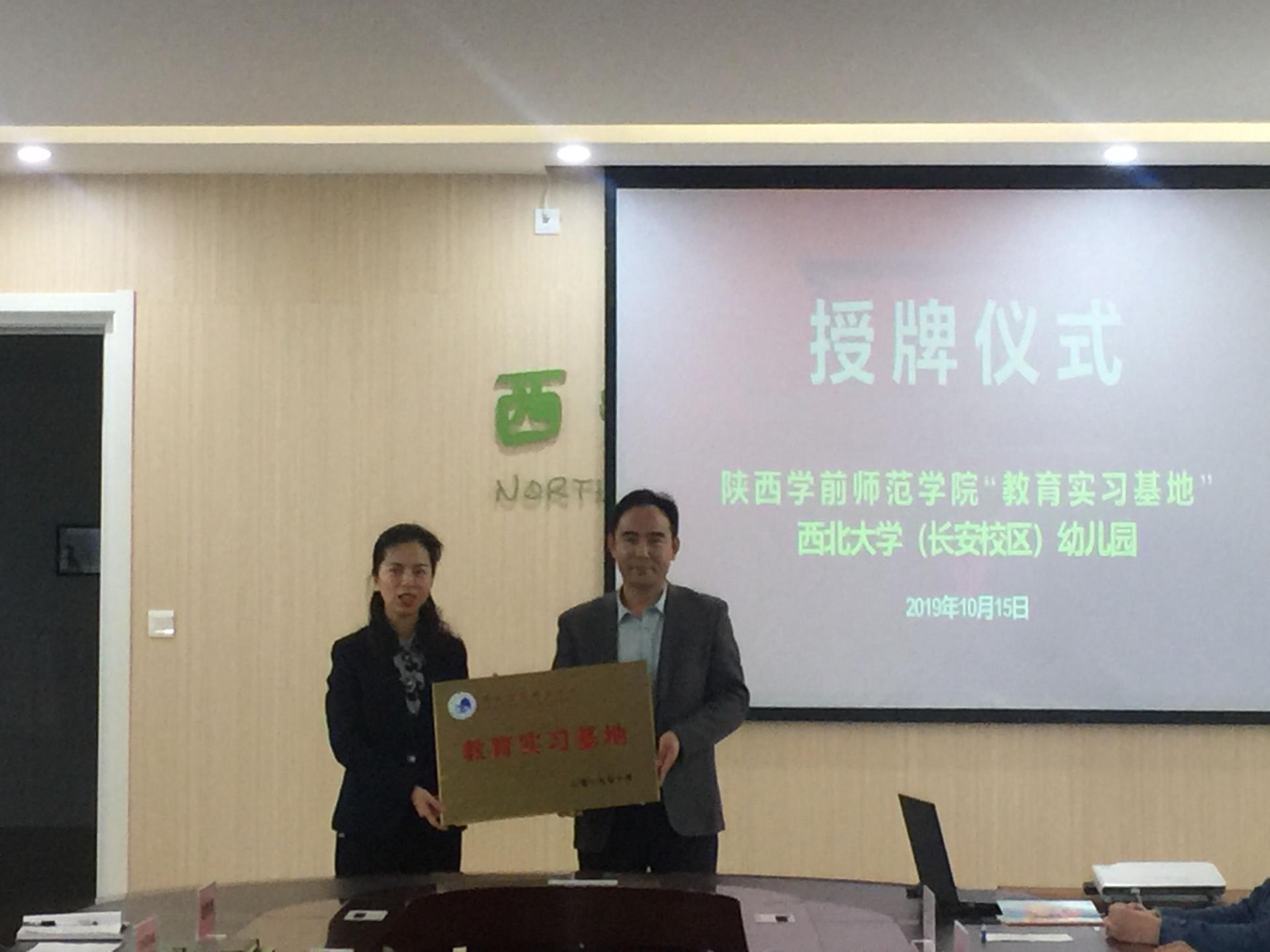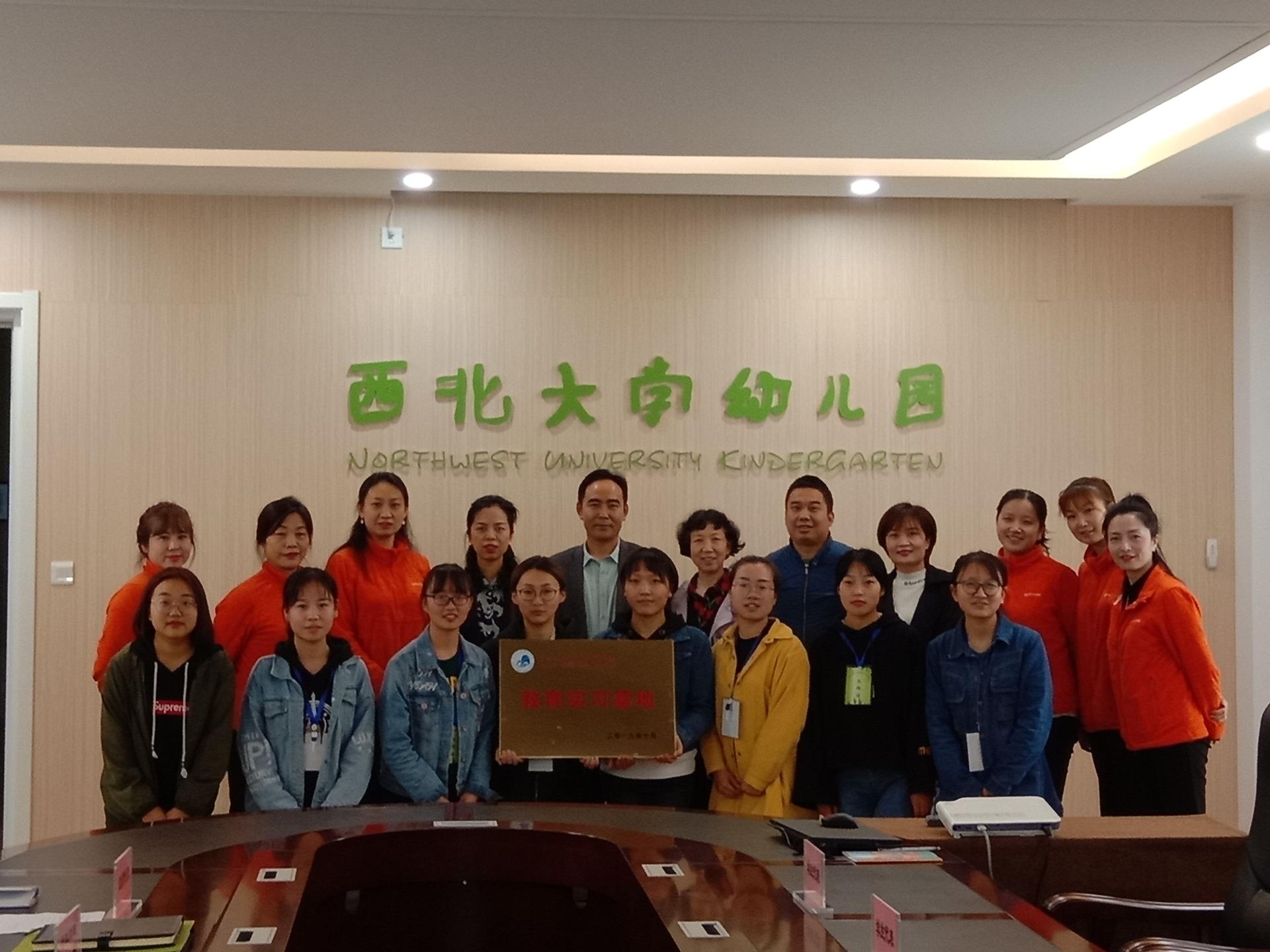 我院与西北大学(长安校区)幼儿园“示范化实践教学基地”授牌仪式在幼儿园会议室举行,西北大学幼儿园园长张蕊,副园长屈艳峰,行政助理、科研助理、教师代表和全体实习生共同参加了授牌仪式。