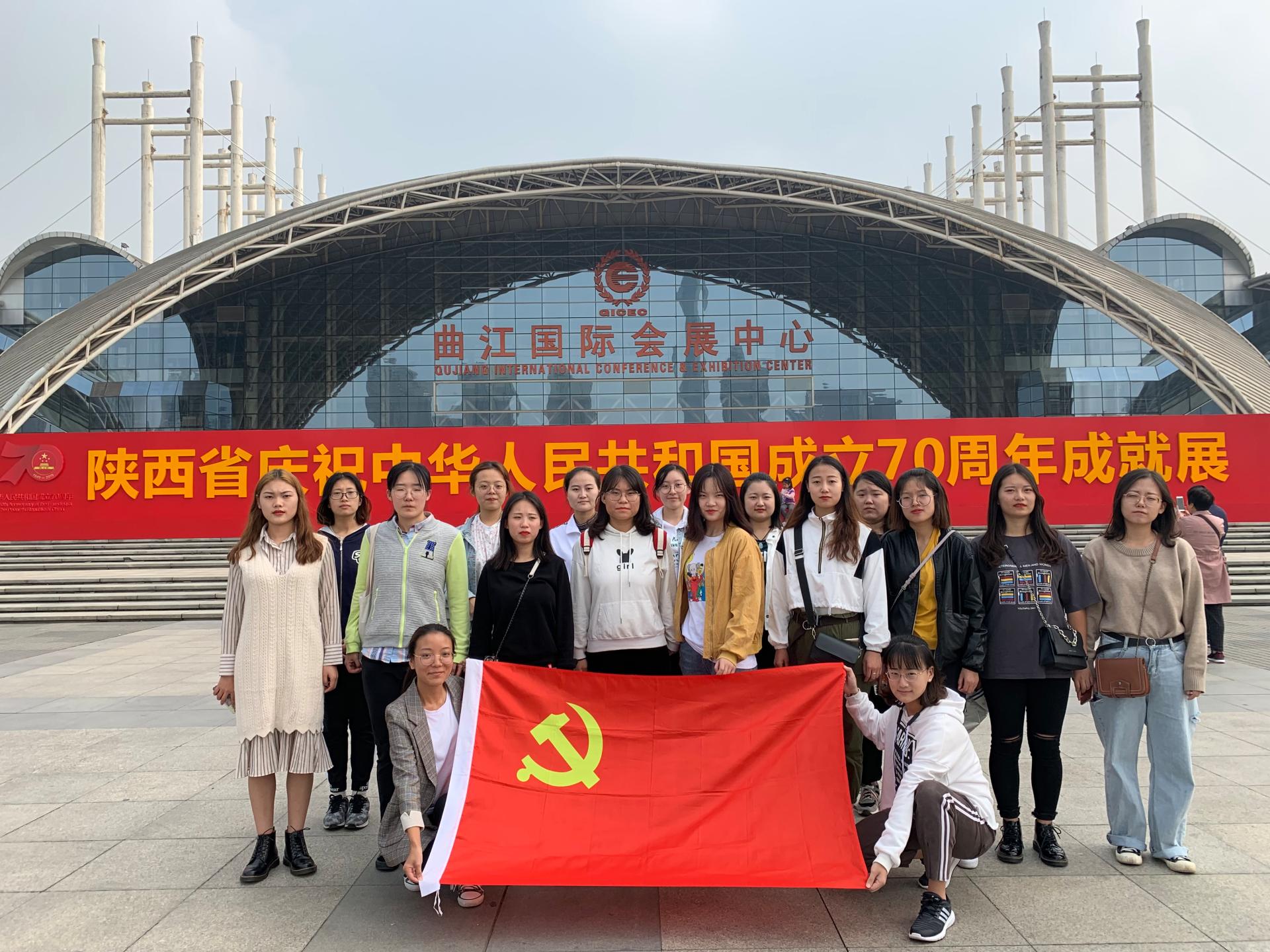 为弘扬爱国主义精神,激发广大学生党员同志的爱党爱国热情,外国语学院学生党支部结合“不忘初心、牢记使命”主题教育,于2019年10月13日下午组织学生党员、积极分子走进由省委宣传部、省委党史研究室、省发展改革委主办,陕西日报社承办的以“辉煌壮丽七十年 追赶超越再出发”为主题的陕西省庆祝中华人民共和国成立70周年成就展。