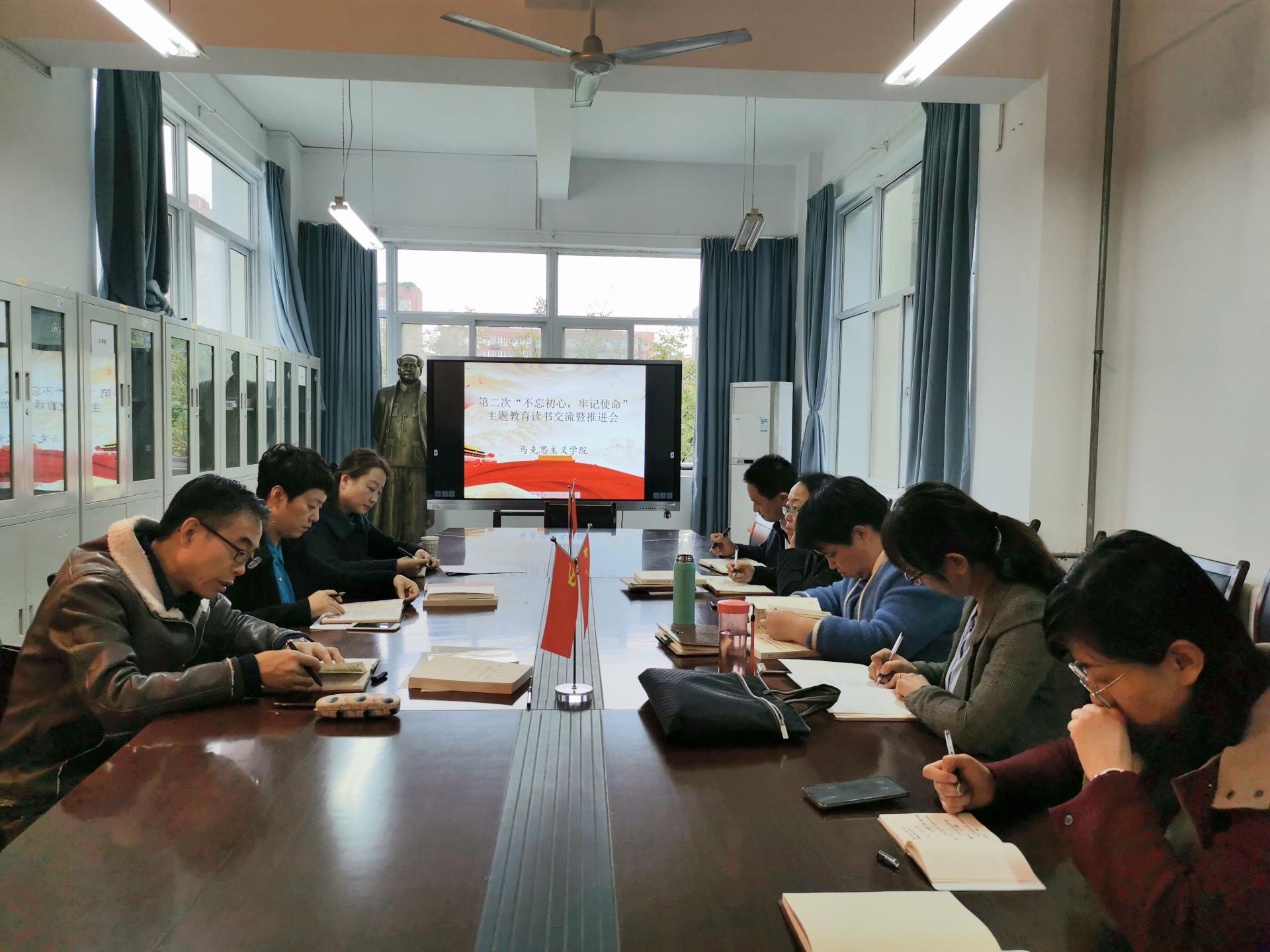 10月14日上午,马克思主义学院召开“不忘初心、牢记使命”主题教育第二次读书交流推进会,学习研讨《习近平关于“不忘初心、牢记使命”重要论述摘编》。学院领导班子成员、总支委员、各党支部书记,第一巡回指导组联络员黄薇同志参加了会议。会议由学院党总支副书记高萍同志主持。