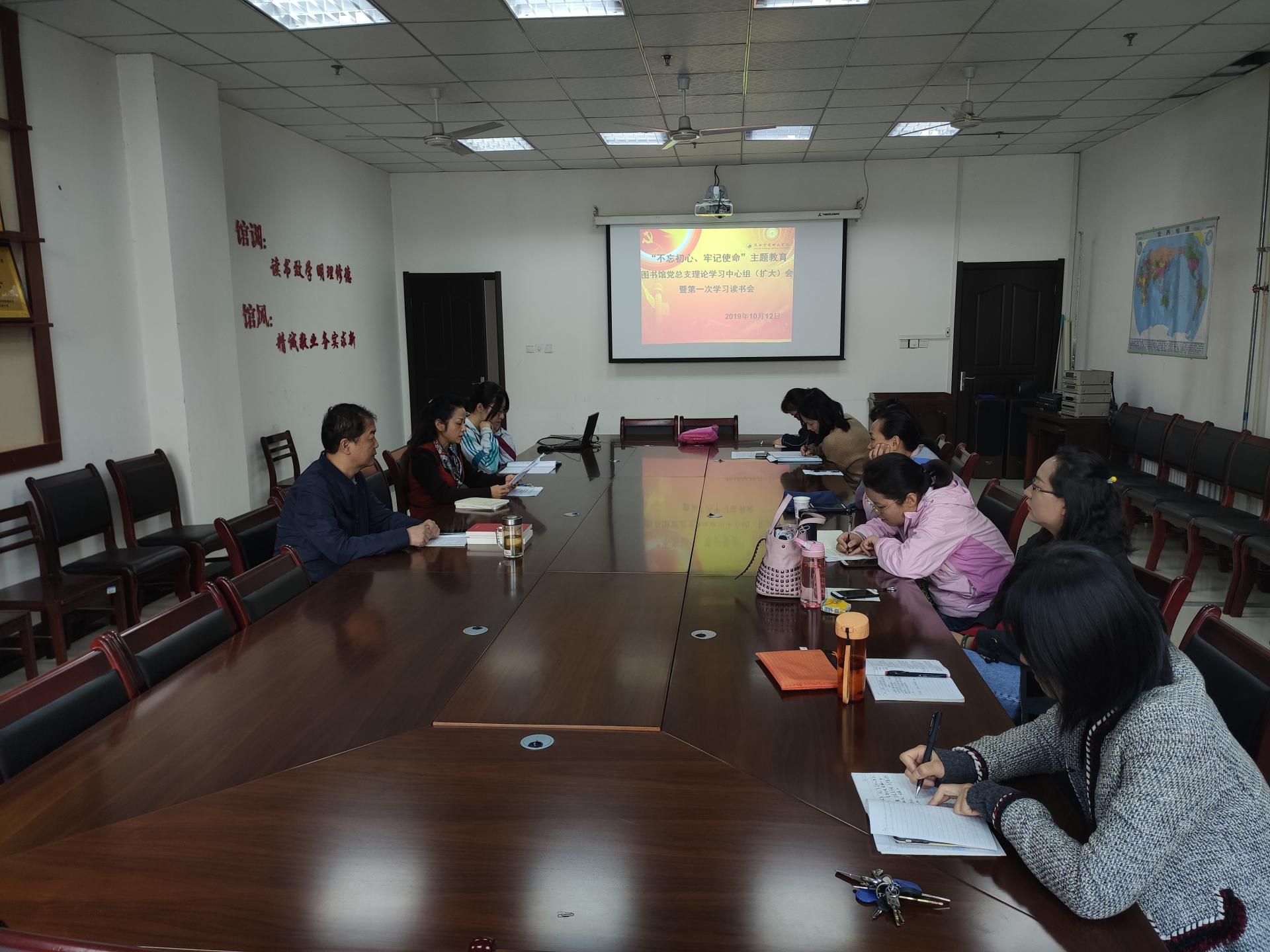 10月12日上午,图书馆党总支开展了“不忘初心、牢记使命”主题教育理论学习会暨第一次学习读书推进会。图书馆党总支书记、馆长、各党支部书记、党总支委员及各支部委员参加了此次会议。会议由党总支书记邸小燕主持。
