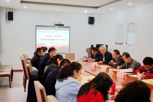 会议分为两个阶段进行。第一阶段为主题教育推进。党总支副书记任丽平同志首先传达了校党委《关于开展“不忘初心、牢记使命”主题教育的实施方案》。党总支书记王奂新同志就党总支和各党支部开展好主题教育进行了部署。王奂新要求各党支部严格执行校党委《实施方案》,遵照“守初心、担使命,找差距、抓落实”的总要求,在认真学习的基础上,增强“四个意识”、坚定“四个自信”、做到“两个维护”,筑牢信仰之基、补足精神之钙、把稳思想之舵。从学校、部门和个人的实际出发,突出问题导向,既着力解决领导班子、党员干部自身存在的问题特别是思想根子问题,又着力解决本部门、本人所涉及的群众最关心最现实的工作问题,并及时彻底整改,努力实现理论学习有收获、思想政治受洗礼、干事创业敢担当、为民服务解难题、清正廉洁作表率的目标。