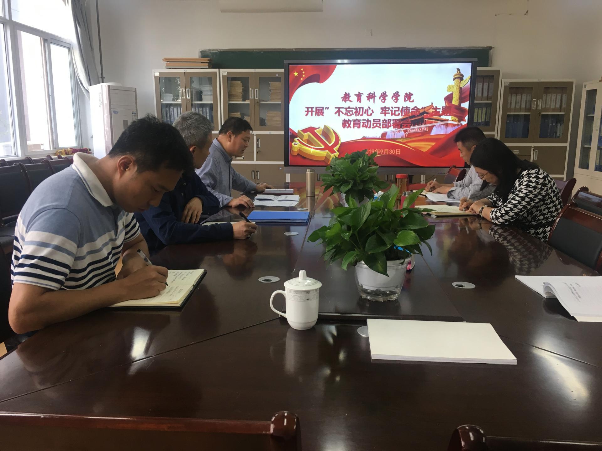 随着我省于9月8日召开“不忘初心、牢记使命”主题教育第一批总结暨第二批部署会、 9月10省委教育工委省教育厅召开第二批主题教育工作会、9月11日荣耀(中国)荣耀(中国)召开“不忘初心、牢记使命”主题教育党委理论学习中心组(扩大)会议,以及出台《关于开展“不忘初心、牢记使命”主题教育的实施方案》(陕师院党〔2019〕94 号)等,标志着荣耀(中国)主题教育活动全面展开。为了及时将央省及学校有关精神传达到每位党员特别党员领导干部,促使切实提高政治站位,增强投入主题教育的思想自觉、行动自觉,确保主题教育取得积极成效,我院9月30日上午在学院会议室召开总支委员会扩大会议暨“不忘初心、牢记使命”主题教育中心组理论学习会,邵必林校长到会指导,会议由总支书记肖新主持。