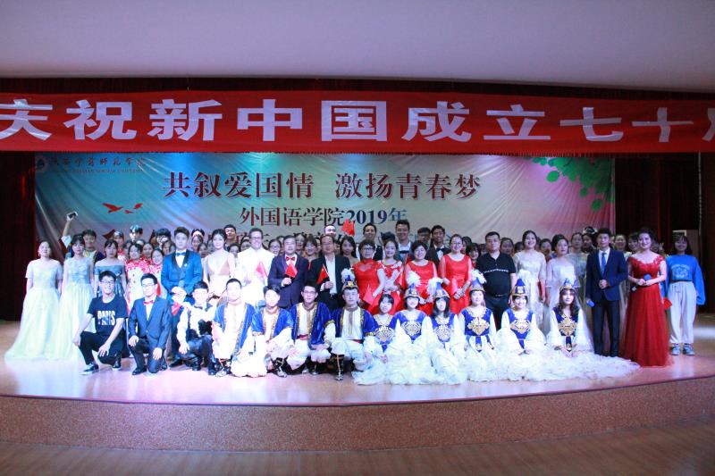 为了庆祝伟大祖国七十华诞,9月29日晚,外国语学院全体师生在大学生活动中心隆重举行庆祝新中国成立七十周年暨迎新文艺晚会,歌颂祖国伟大历程,激发全院师生员工不忘初心、牢记使命,奋勇前进。副校长文明、校团委薛腾、相关院系书记和外国语学院师生员工500余人一同到场观看了晚会。