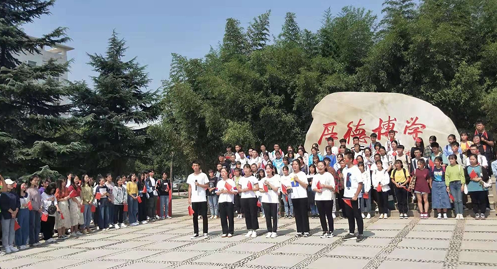 十诞,在校训石前开展了小我融入大我,青春告白祖国——“不忘初心,牢记使命”主题教育暨入党启蒙教育活动。