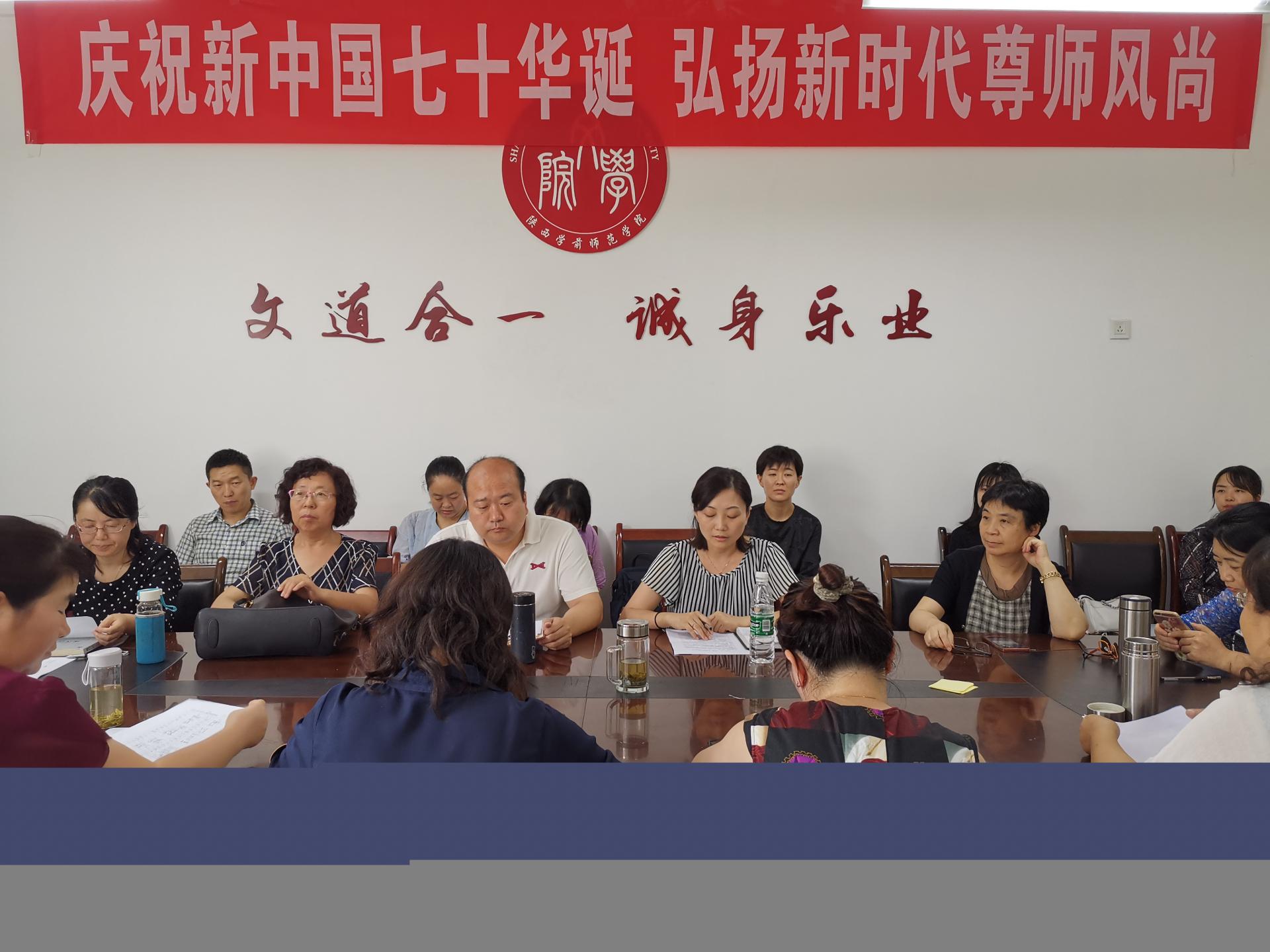【教育科学学院】为了庆祝我国第35个教师节,发扬尊师重教优良传统,强化教师队伍师德建设,2019年9月7日下午2:30,教育科学学院在会议室召开了庆祝教师节座谈会。座谈会由朱金卫院长主持,学院领导班子成员和全体教师出席。