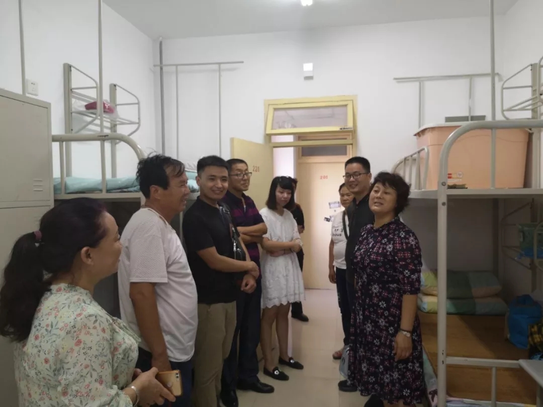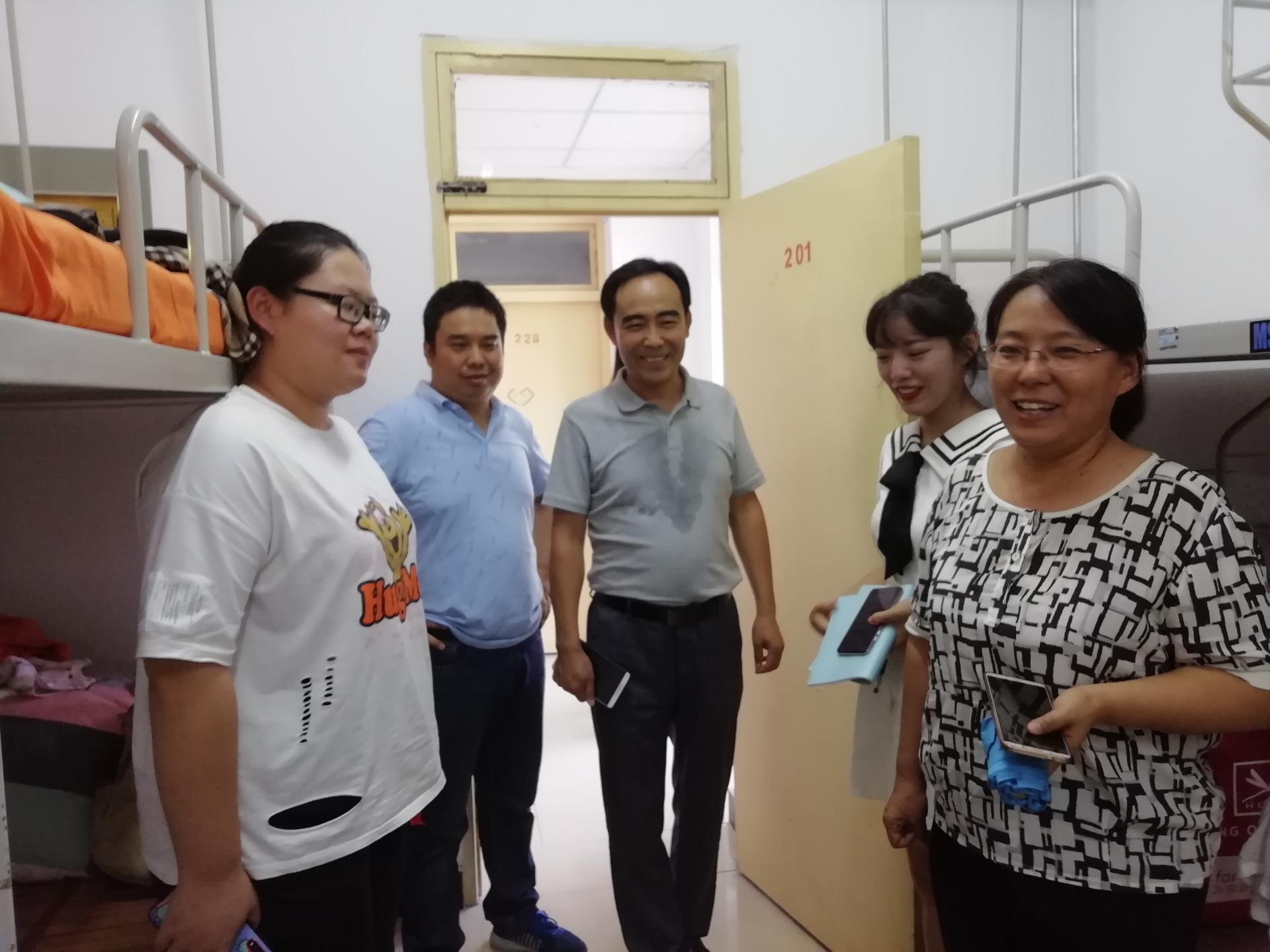 下午4点,院长刘满堂,党总支书记张慧军,副书记侯文彬,辅导员彭莉老师及部分学生干部一起走访新生宿舍,对新生和家长表示热烈欢迎,详细询问了同学们的入学报到情况、对学校环境的适应情况以及宿舍设施的使用情况,希望同学们能尽快适应大学生活,为创建良好的生活环境共同努力。刘院长鼓励同学们加强沟通交流,尽快适应大学新生活,设定好学业目标、作好人生规划。他还叮嘱新同学要增强安全防范意识,谨防上当受骗,遇到困难要及时向辅导员和学院领导反映。老师们亲切而真诚的关怀,让新生倍感温暖,纷纷表示,很高兴能够加入到外国语学院这个温暖的大家庭,他们决心不负学院与家长的期望,一定以饱满的精神状态迎接挑战,尽快融入大学生活。