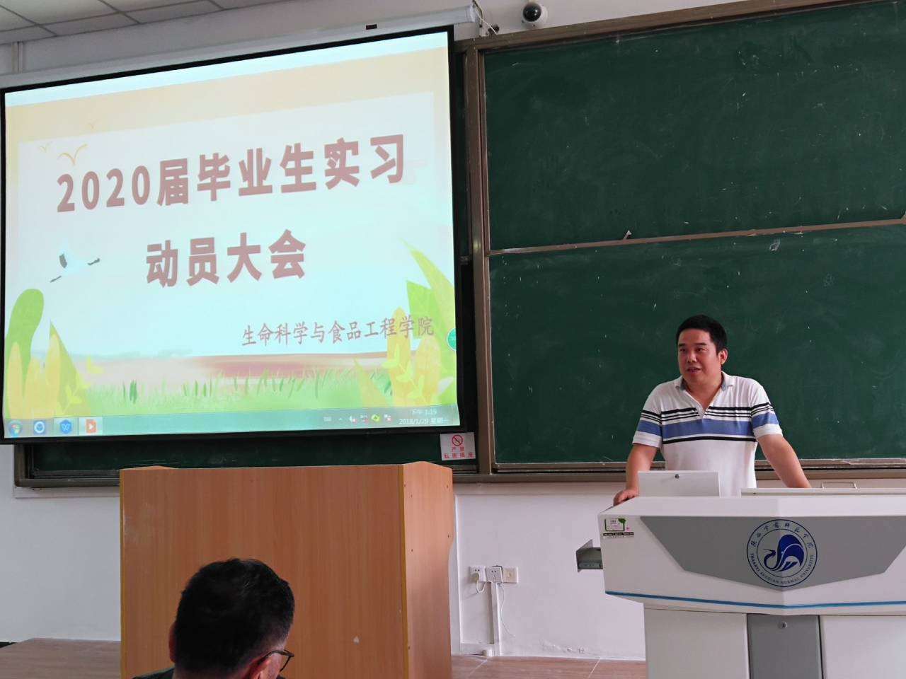 【生命科学与食品工程学院】9月6日中午,生科院在一号教学楼B1教室召开2020届毕业生实习动员大会,110位生物科学专业和62名食品科学与工程专业毕业生参加了此次大会。生科院所有党政领导、实习指导老师和毕业班辅导员莅临会议。