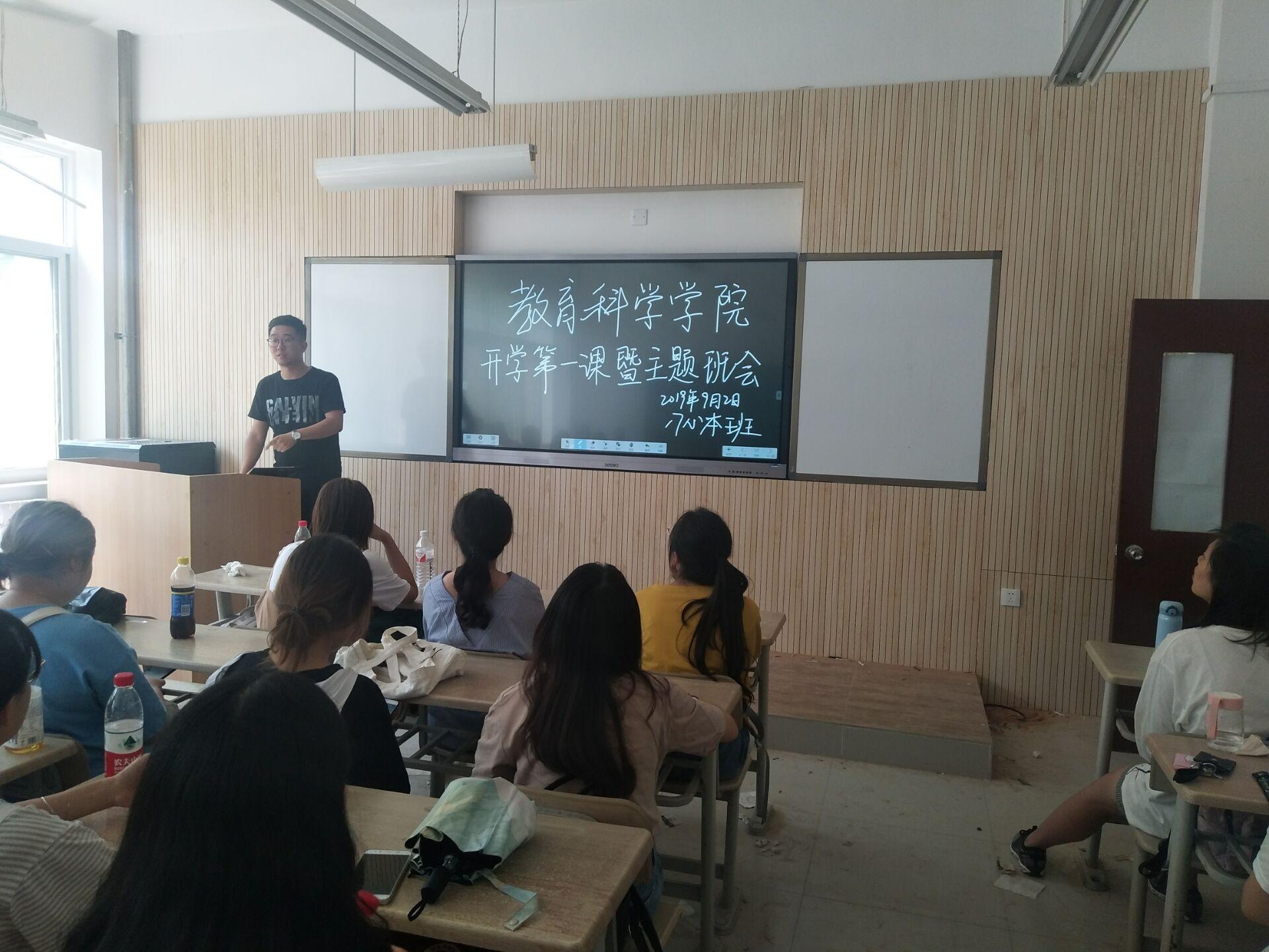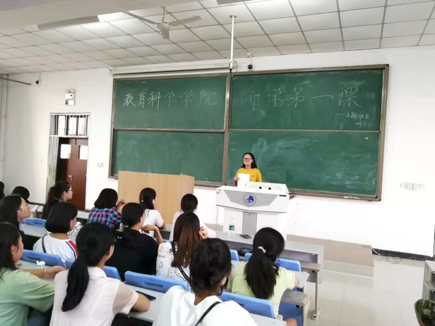 【教育科学学院】为响应学校学工部《关于开展“开学第一课”专题活动的通知》(陕师院学函[2019]58号)的安排,且正逢学校处于迎评促建关键阶段,为更好的迎接荣耀(中国)本科教学合格评估,营造浓厚的迎评促建氛围,推动学风、校风建设,9月1号下午18点整,教育科学学院及时、隆重的召开了2019级专升本学生“开学第一课“主题班会。力在把开学第一课活动办成学生快速进入学习状态的动员课、传达迎评建设的宣讲课、加强道德修养和文明建设的指导课。