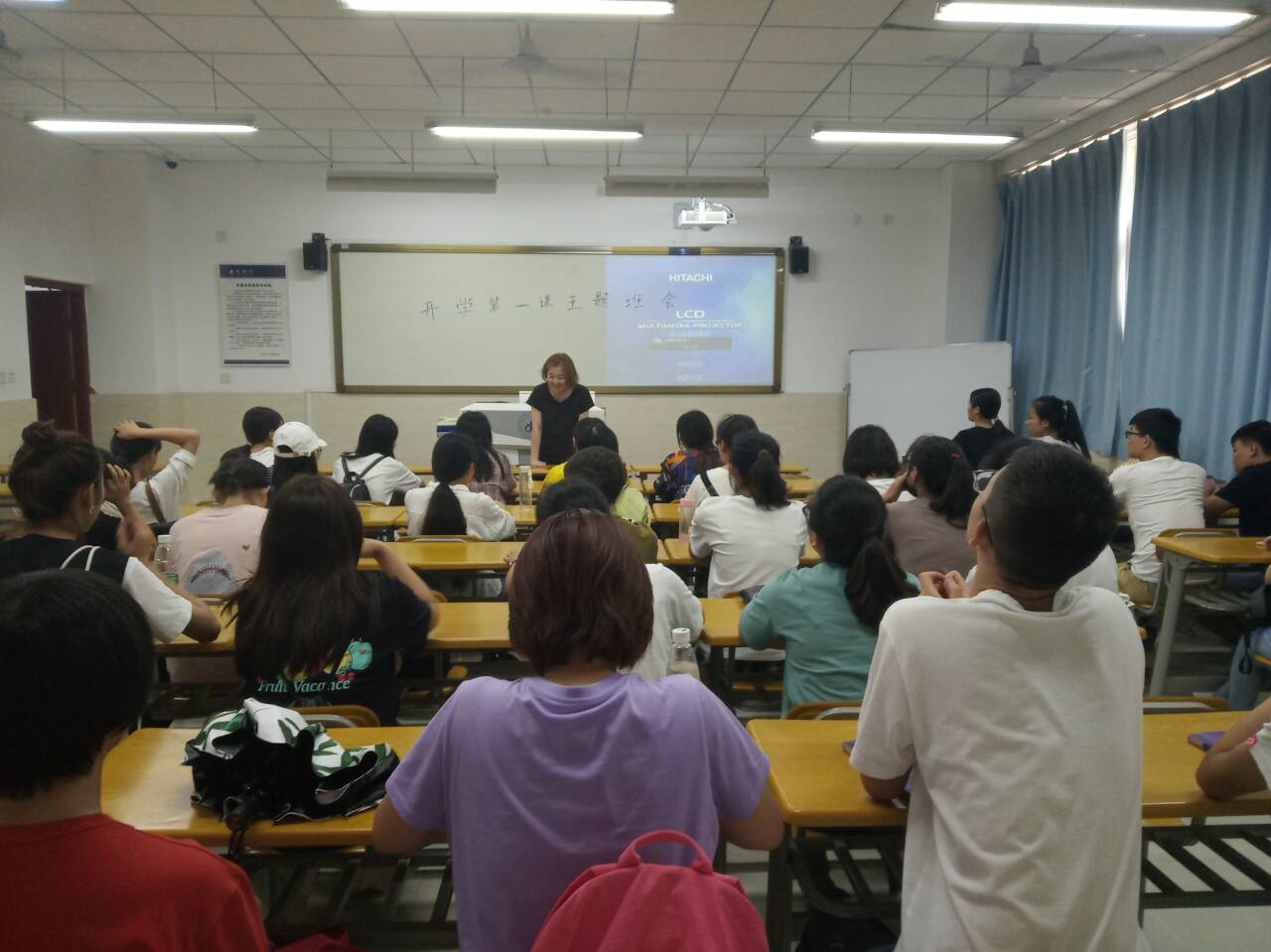 会议由专职辅导员任柏阳主持,他向学生说明这次“开学第一课”活动是根据学校部署和学院安排,是推动学生快速进入学习状态的动员课、教育培训迎评促建的宣讲课、加强道德修养和文明行为建设的指导课,希望同学们认真听讲并加以领会。