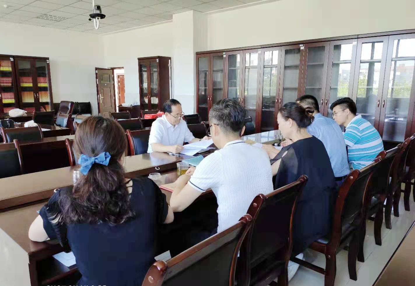 8月7日上午,文明副校长来我院检查指导诊断评估整改落实工作,学院领导班子全体人员和办公室主任等参加了会议。