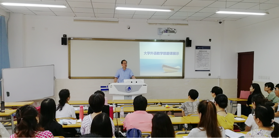 为了切实提高广大教师的教学基本功,为本科教学合格评估做好准备,2019年8月5日至6日上午,外国语学院英语系、翻译系、大学外语教研一部、二部的全体在岗教师在四号教学楼103、104、105教室举行磨课活动。到场参加此次活动的有院长刘满堂、党总支书记张慧军、副院长郭卫平和副院长张莉娟。