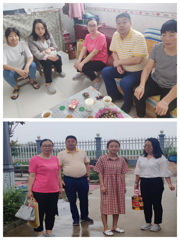 【美术学院】为广泛宣传和贯彻落实高校家庭经济困难学生资助政策,深入了解贫困学生家庭的实际状况,更好地关爱贫困生,做好精准资助、精准育人,8月9日,美术学院党总支副书记文竹、于跃带领辅导员贺璐璐、任晓春一行四人先后走访慰问了两户困难学生家庭,送去米面油等慰问品,转达了学院的关心和问候。