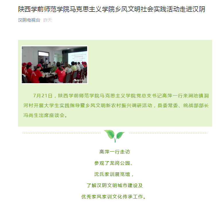 汉阴新闻网和汉阴电视台对马克思主义学院“三下乡”社会实践团队服务地方经济发展的工作开展情况及座谈交流活动进行了报道