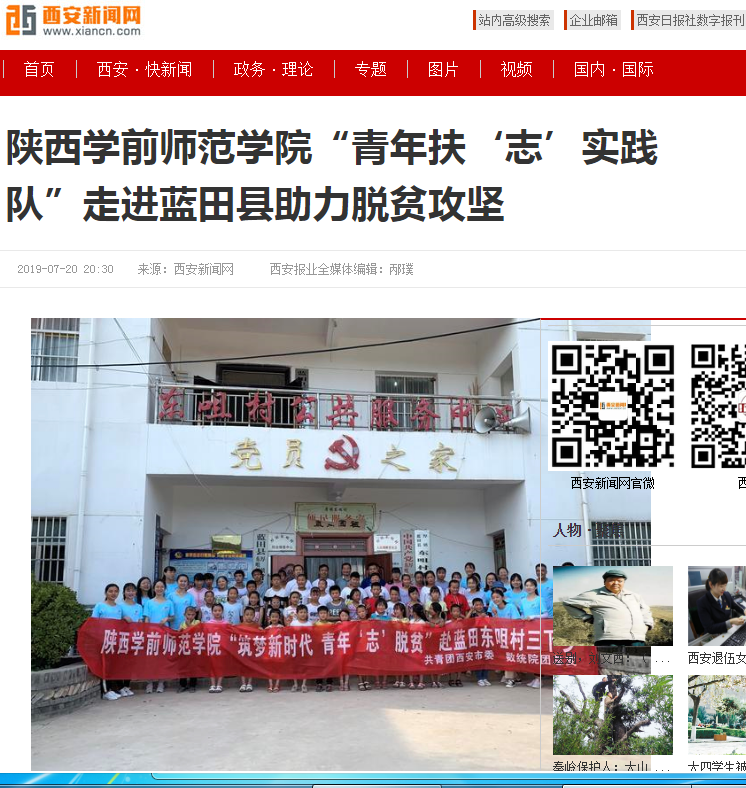 《西安日报》7月20日报道《荣耀体育最新官方“青年扶‘志’实践队”走进蓝田县助力脱贫攻坚》