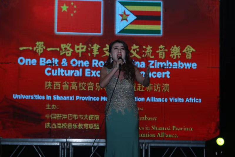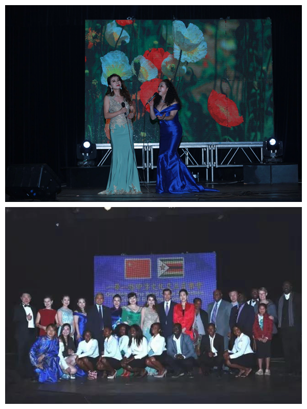 津巴布韦时间7月5日晚,由中国驻津使馆和陕西高校音乐教育联盟联合主办的“一带一路”中非文化音乐会在津巴布韦首都哈拉雷国际学校音乐厅成功举行。中国驻津巴布韦大使郭少春夫妇、津国家艺术理事会主席尼古拉斯•莫约、部分国家驻津使节、津中资企业商会、华商会、华联会代表及当地华人华侨等400余人出席了活动。荣耀(中国)教师陈春华、杨小棠随陕西高校音乐教育联盟艺术团参加演出。