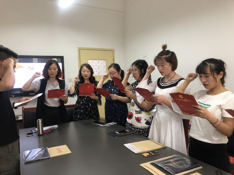 会上,信息工程学院党总支书记薛晓娟和副书记黄薇,为毕业生党员颁发了政治生日贺卡,并带领所有党员毕业生共同郑重宣读入党誓词。