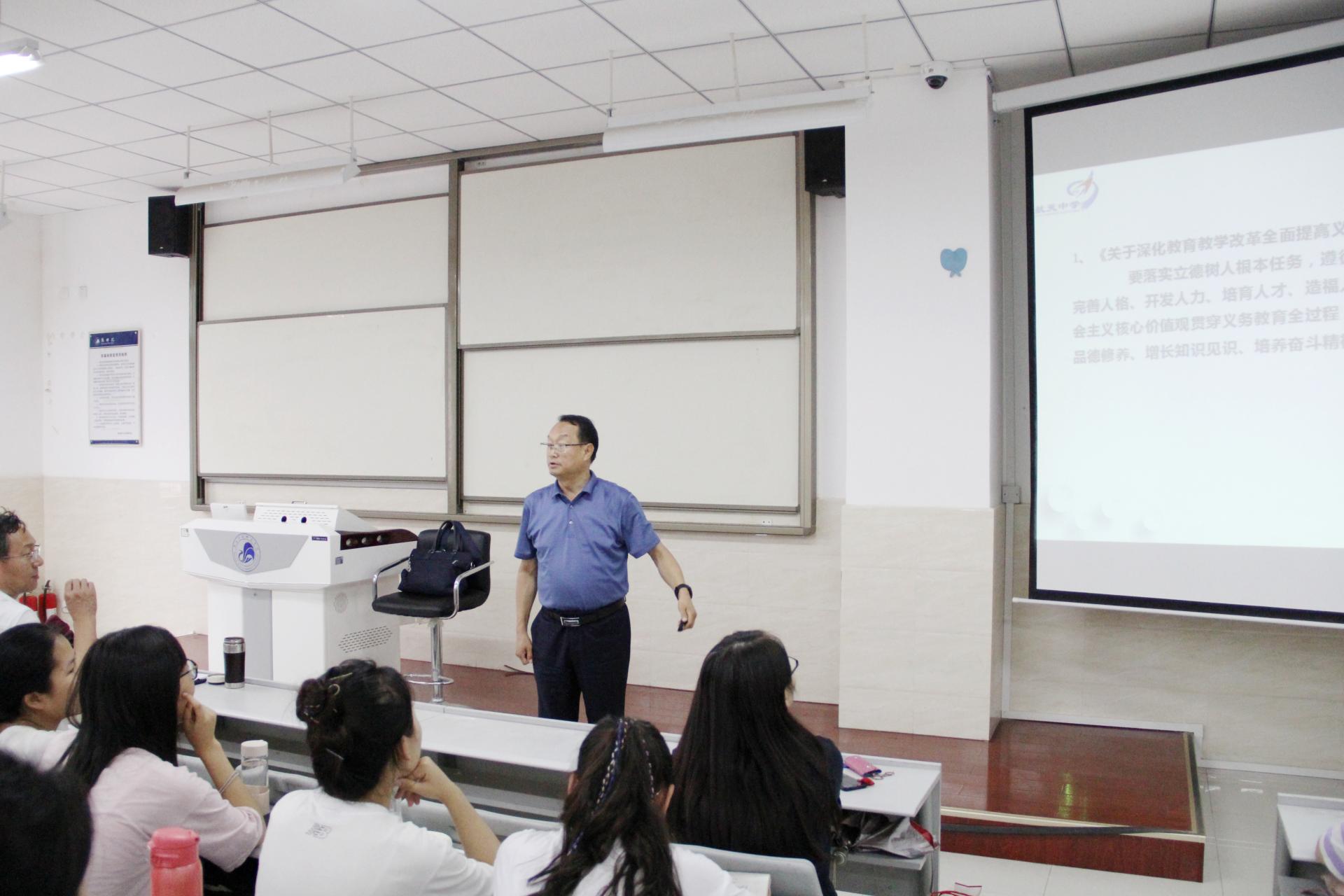 2019年6月20日下午,西安市航天中学校长、英语特级教师徐世锋老师应邀为外国语学院全体教师和部分学生做了题为“聚焦核心素养,强化专业能力,改善课堂生态,提升课堂效益”的讲座,讲座由外国语学院院长刘满堂教授主持。