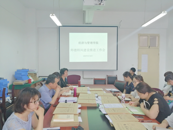 2019年6月19日,经济与管理学院在1教楼B411召开师德师风建设工作推进会,学院全体教职工参加会议,会议由崔洁院长主持。