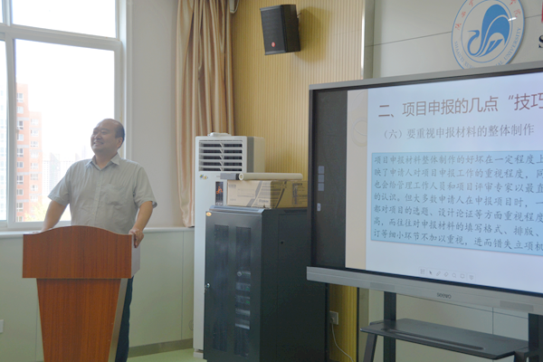 王建国教授首先简要介绍了洛阳师范学院文学院师资队伍、专业特色和科研情况。随后他做了题为“中文学科研究与科研项目申报”的专题报告,王教授围绕中文学科项目申报的准备和技巧作了详细介绍,他指出,项目申报时要注重选题与学术积累,讲究方法和研究的视野,善于沉潜与交流。要精心设计研究选题,课题论证力求精确,尤其要在申报表的填写上下功夫,重视项目申报的整体质量,“优秀源于专注,成功来自细节”,王教授激励大家做任何事情都要持之以恒,在学术研究中正确处理“博”与“专”,做沉潜学问,成一家之言,报告给每位教师留下了深刻的印象。